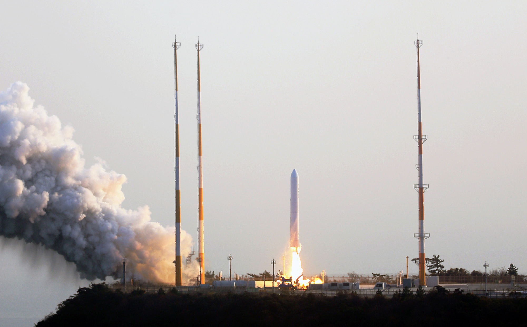 순수 국내기술로 개발된 한국형발사체(KSLV-2) ‘누리호’의 시험발사체가 27일 오후 전라남도 고흥 나로우주센터 발사대에서 우주를 향해 발사되고 있다. 2018/11/28 뉴스웨이 이수길 (NEWSWAY Sukil.Lee)