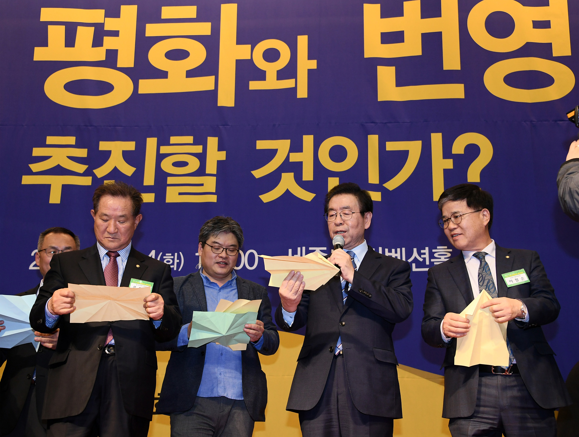 박원순 서울시장이 4일 오후 서울 광진구 세종대학교 광개토관 컨벤션홀에서 열린 2018 서울 평화통일 원탁회의 '한반도 평화와 번영, 어떻게 추진할 것인가?'에 참석하고 있다. 서울시 제공