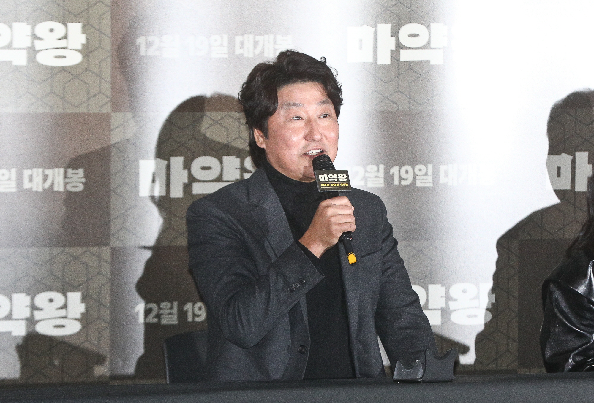 [서울=eoimage] 고성준 기자 = 14일 오후 서울 용산구 한강로 용산 아이파크몰 용산 CGV에서 열린 영화 ‘마약왕’ 언론시사회에 우민호 감독을 비롯해 배우 송강호, 조정석, 배두나, 김대명, 김소진이 참석하고 있다. 2018.12.14