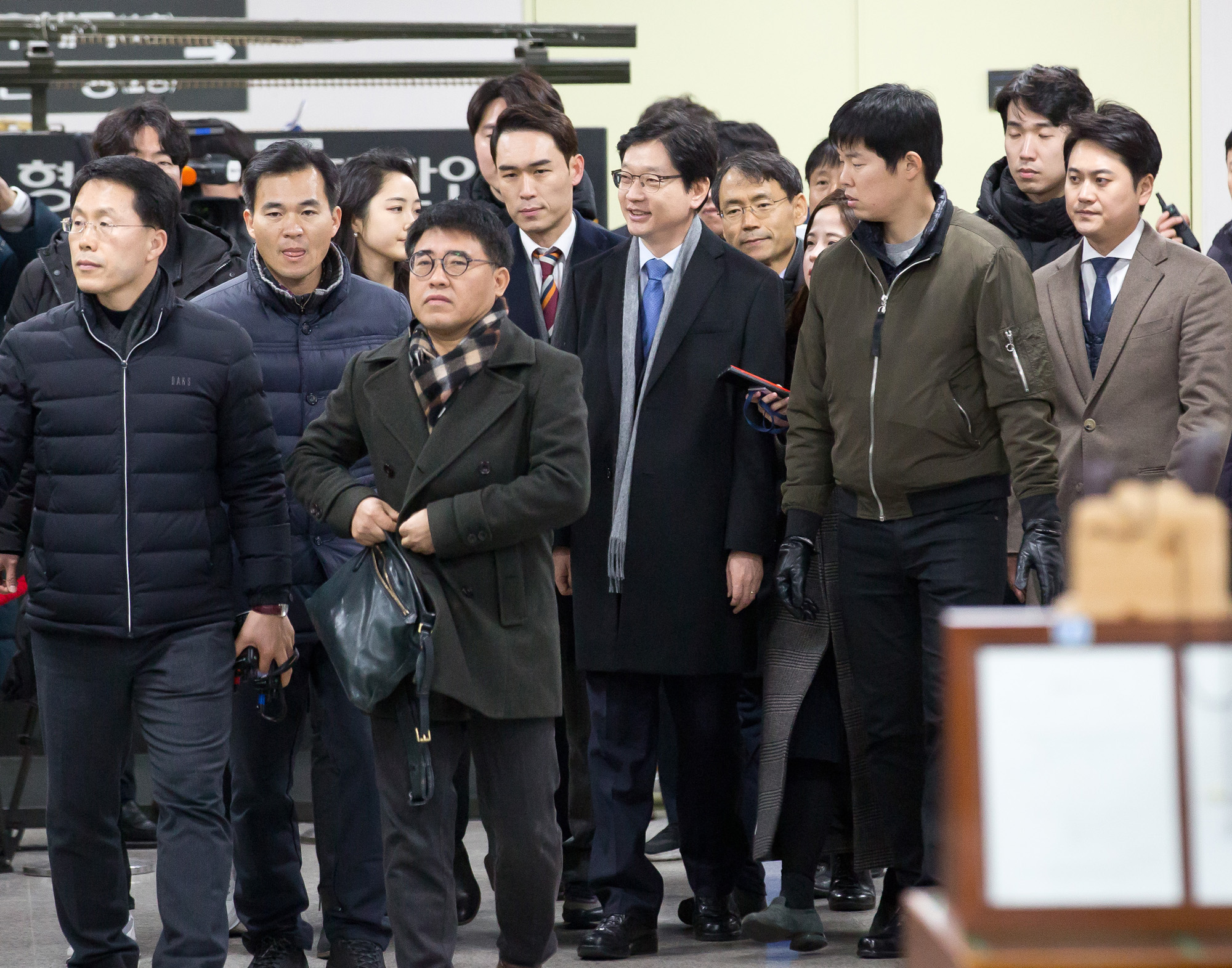[서울=eoimage] (이오이미지) 임준선기자 =김경수 경남지사가 21일 오전 서울 서초구 서울중앙지방법원에서 열린 ‘드루킹 특검’ 관련 컴퓨터등장애업무방해 등 공판에 출석하고 있다. 2018.12.21