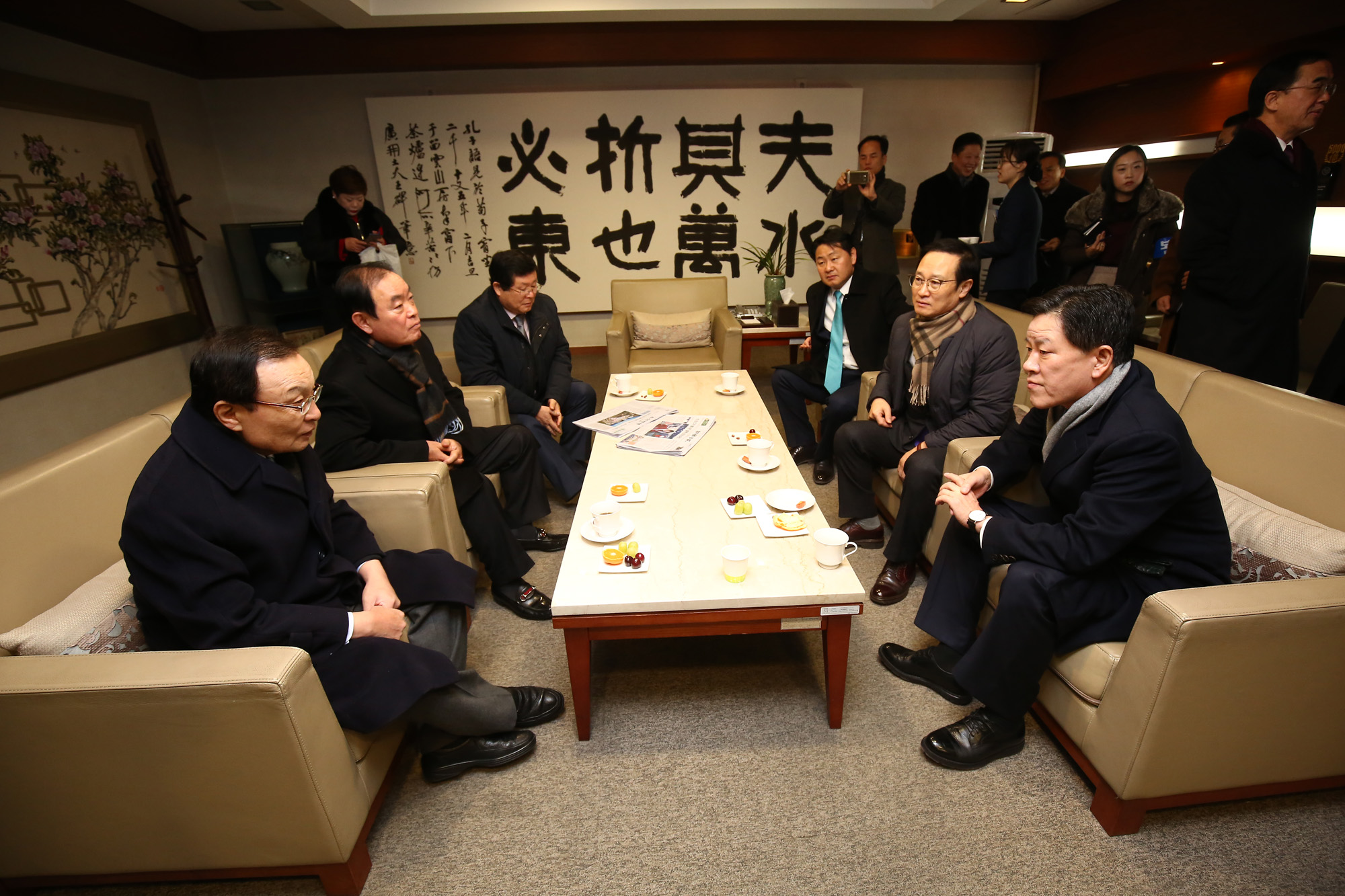 이해찬대표가 참석자들과 이야기르 나누고 있다.2018.12.26 사진/임준선기자