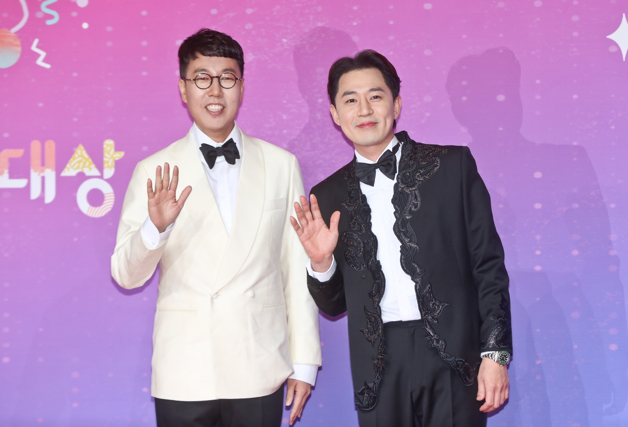 [서울=eoimage] 고성준 기자 = 28일 오후 서울 마포구 상암동 SBS프리즘타워에서 열린 '2018 SBS 연예대상'에 참석한 김영철, 붐이 포즈를 취하고 있다. 2018.12.28