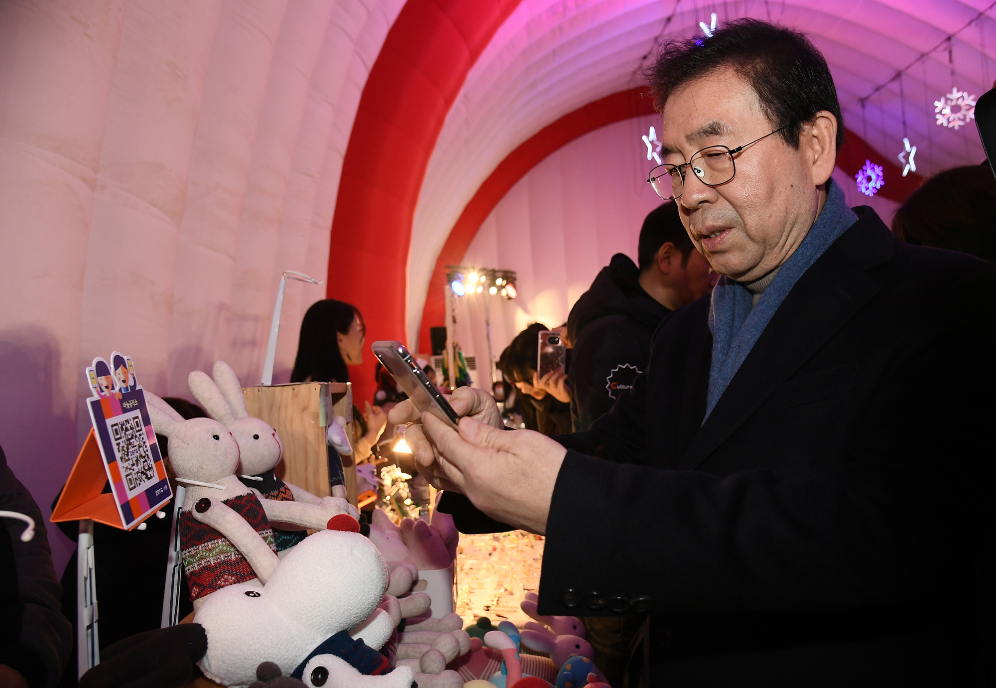 크리스마스인 25일 오후 박원순 서울시장이 서울크리스마스마켓을 둘러 보고 있다. 서울시 제공