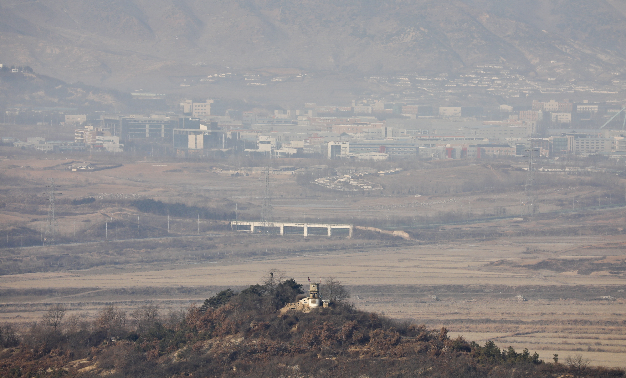 [파주=eoimage] 고성준 기자 = 7일 오전 경기도 파주시 도라전망대에서 바라본 북측 초소 모습. 2019.1.7