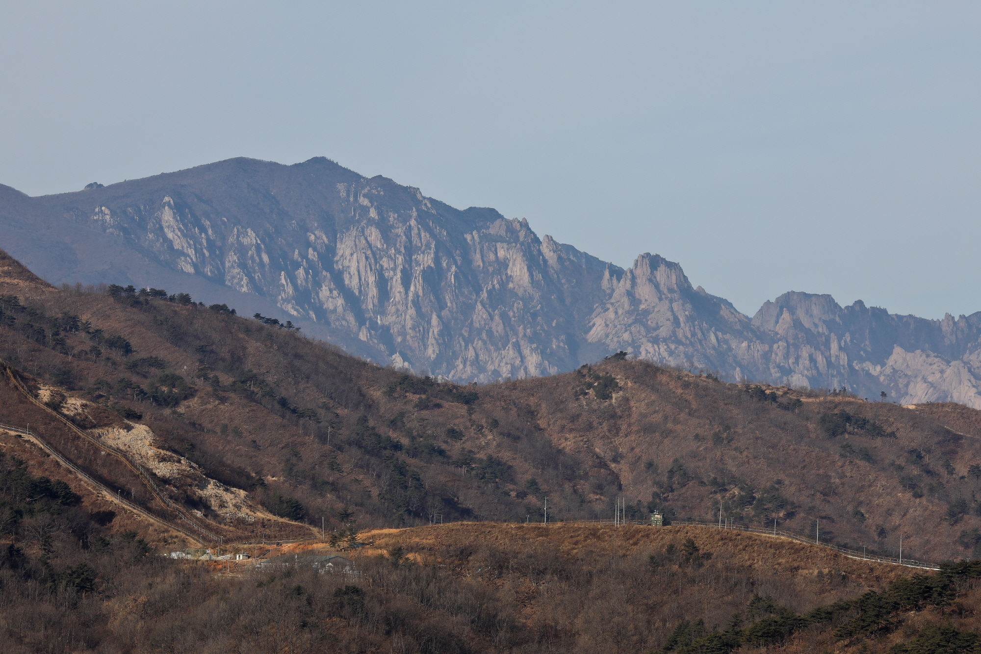 [고성=eoimage] 고성준 기자 = 9일 오전 강원도 고성군 통일전망대에서 바라본 금강산 일대 모습. 2019.1.9
