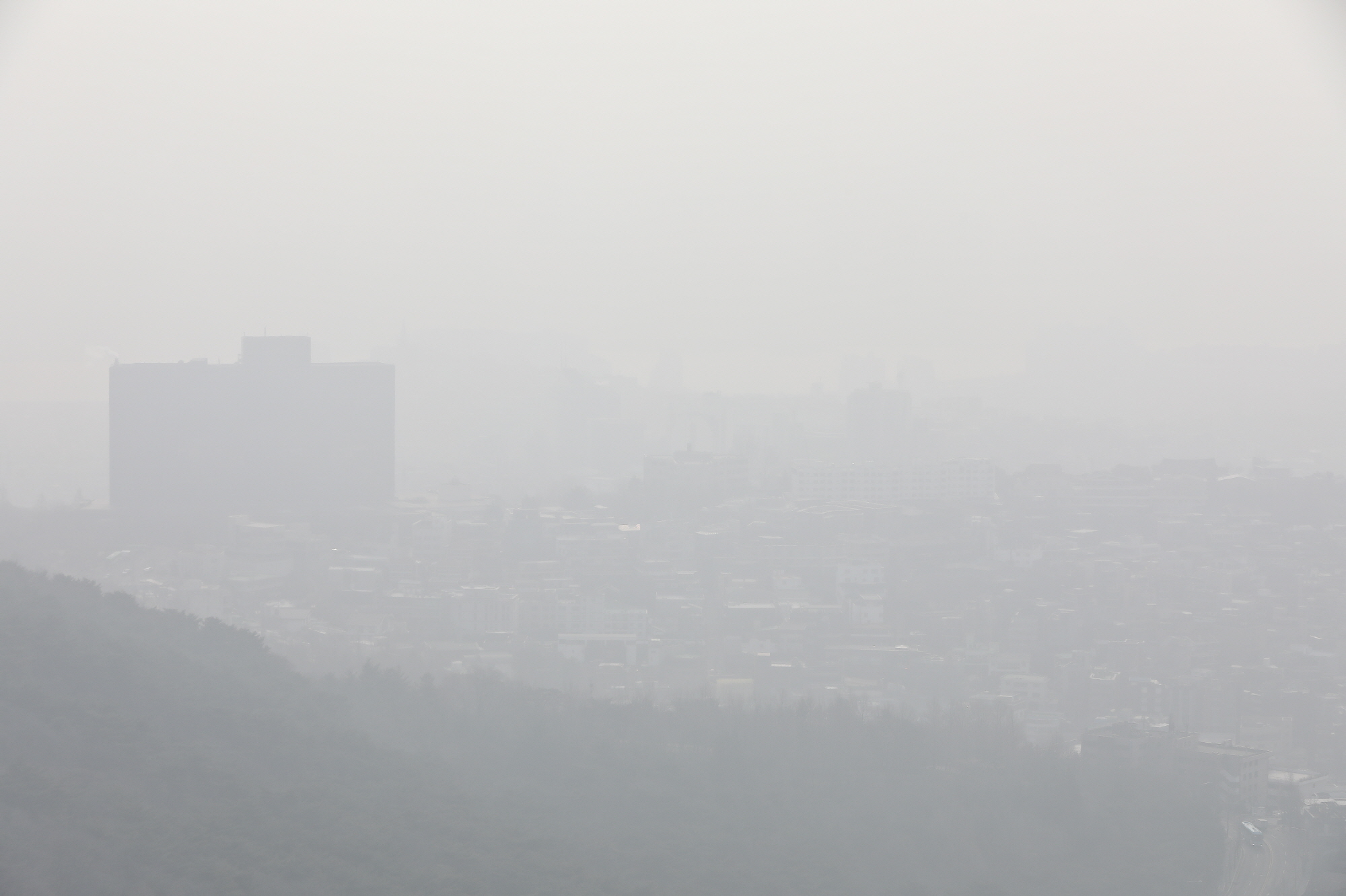 [서울=eoimage] 고성준 기자 = 15일 오전 서울 남산에서 바라본 서울 도심이 미세먼지의 영향으로 뿌연 모습을 보이고 있다. 2019.1.15