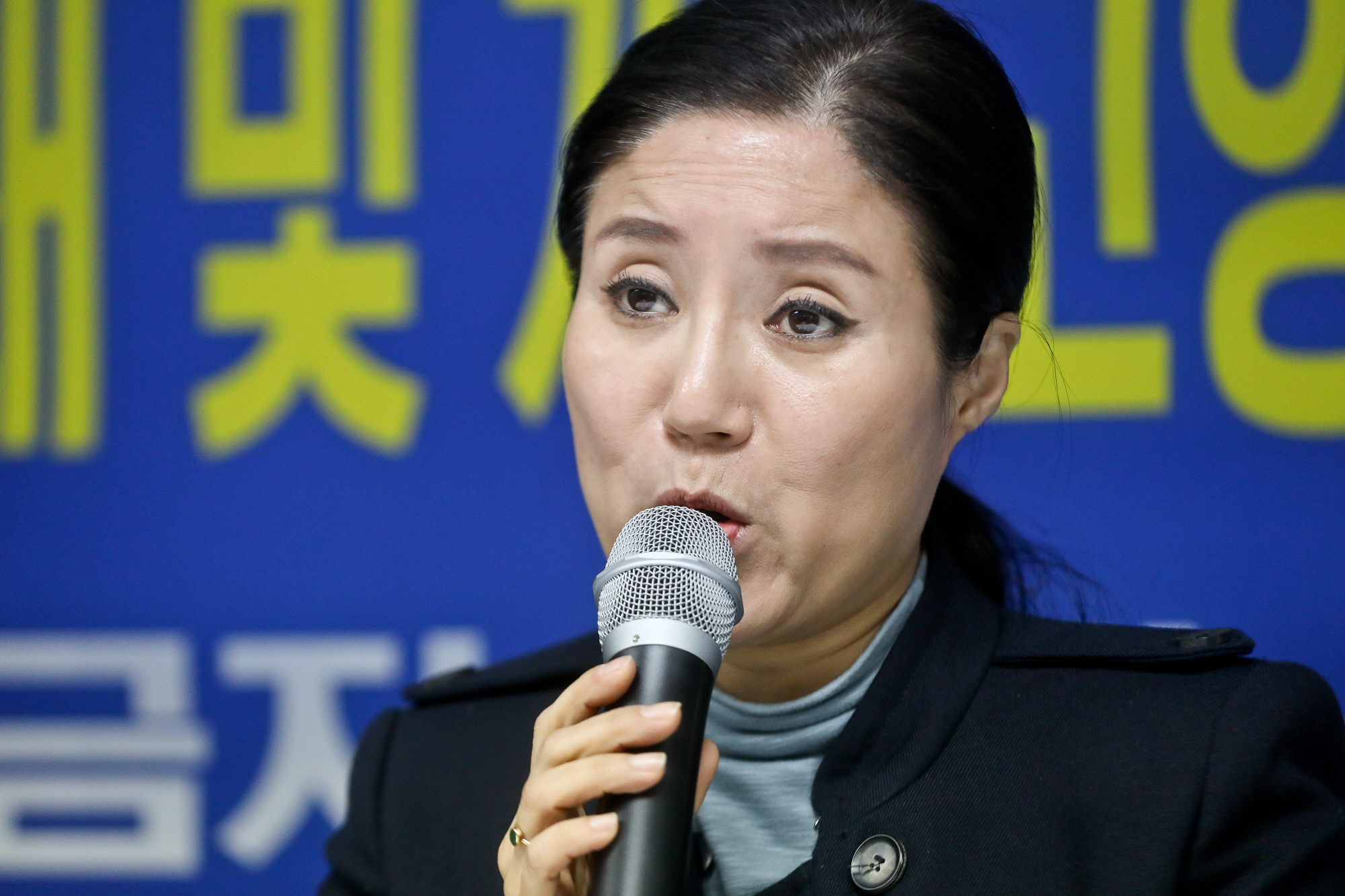 [서울=eoimage] 고성준 기자 = 19일 오전 서울 서초구에 위치한 빌딩에서 케어 박소연 대표가 기자회견에 참석하고 있다. 2019.1.19