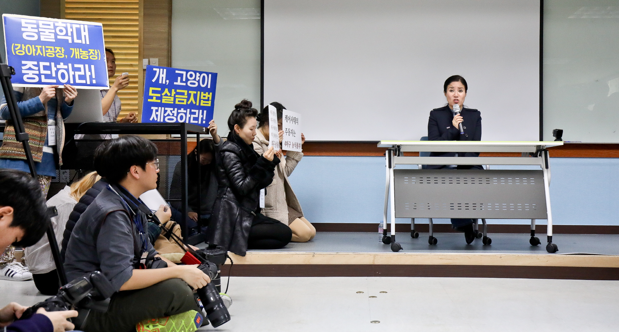 [서울=eoimage] 고성준 기자 = 19일 오전 서울 서초구에 위치한 빌딩에서 케어 박소연 대표가 기자회견에 참석하고 있다. 2019.1.19