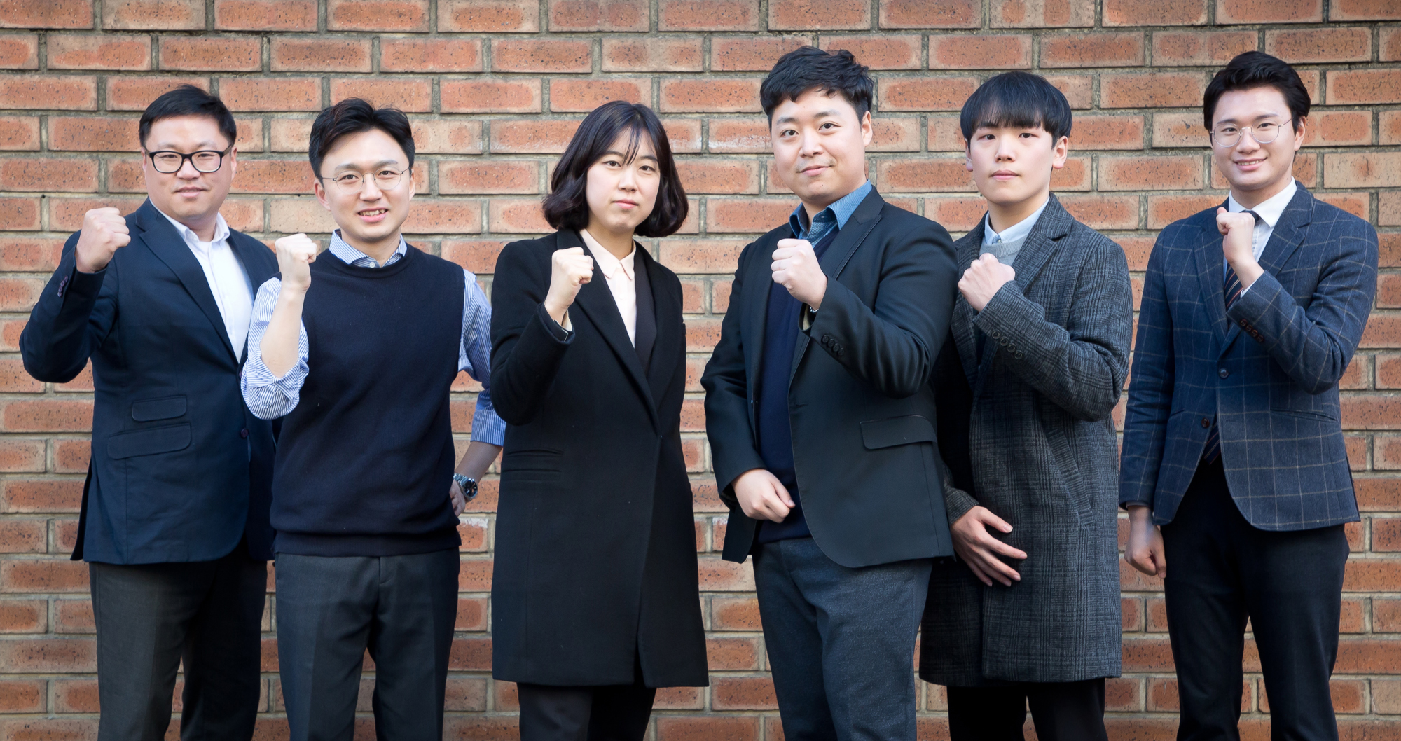 [서울=Eoimage] 임준선 기자 = 24일 오후 강남구 매봉역 인근에서 정원석 자유한국당 강남을 조직위원장(왼쪽에서 네번째)과 청사진(2030 보수청년 네트워크 정치 스타트업)구성원들이 시사저널과 인터뷰를 마치고 사진 포즈를 취하고 있다. 2019.1.24