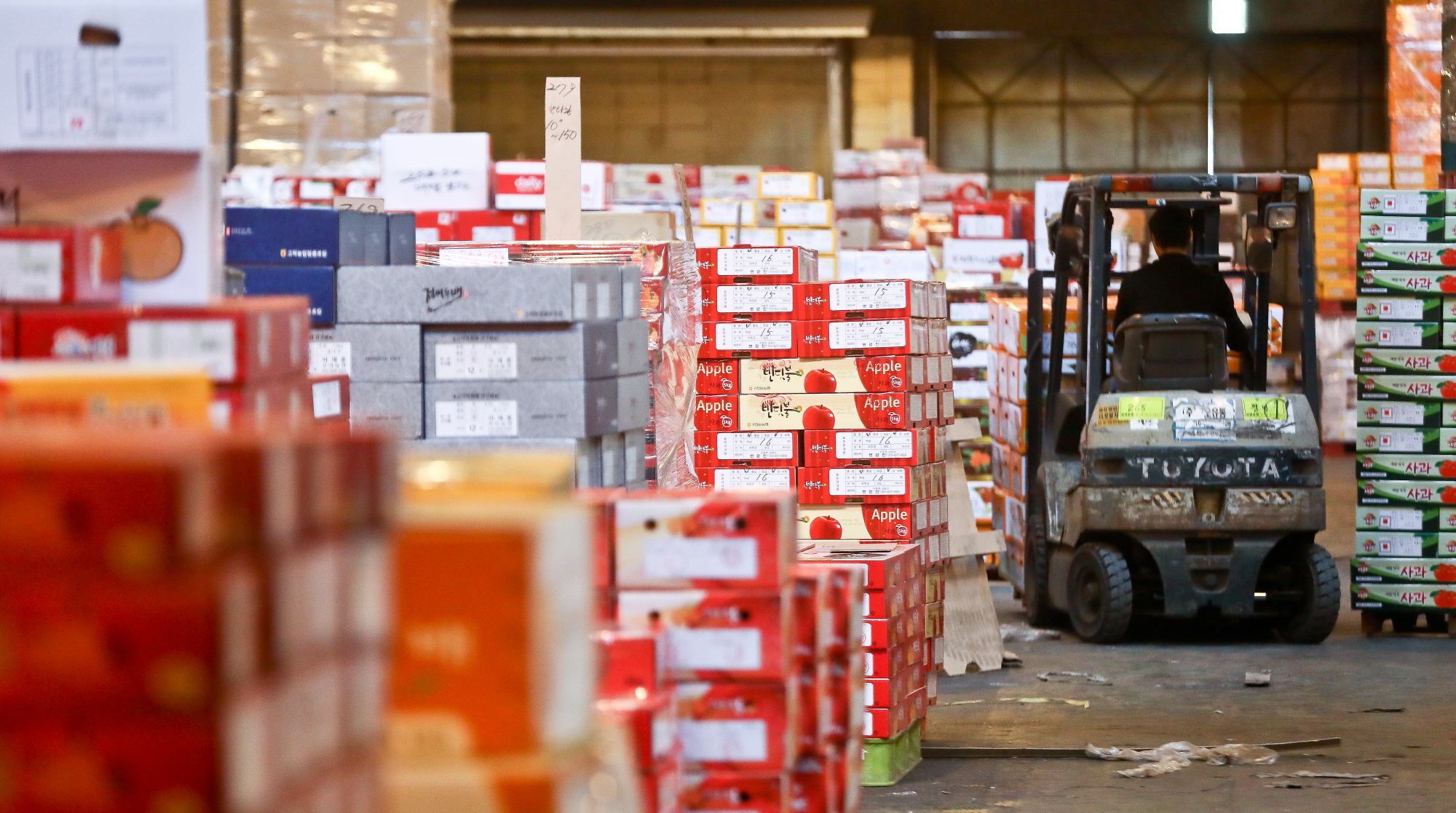 [서울=eoimage] 고성준 기자 = 28일 오후 서울 가락동 농수산물 도매시장 내 청과시장 상인들이 설 명절을 앞두고 과일 경매를 준비하느라 분주하다. 2019.1.28