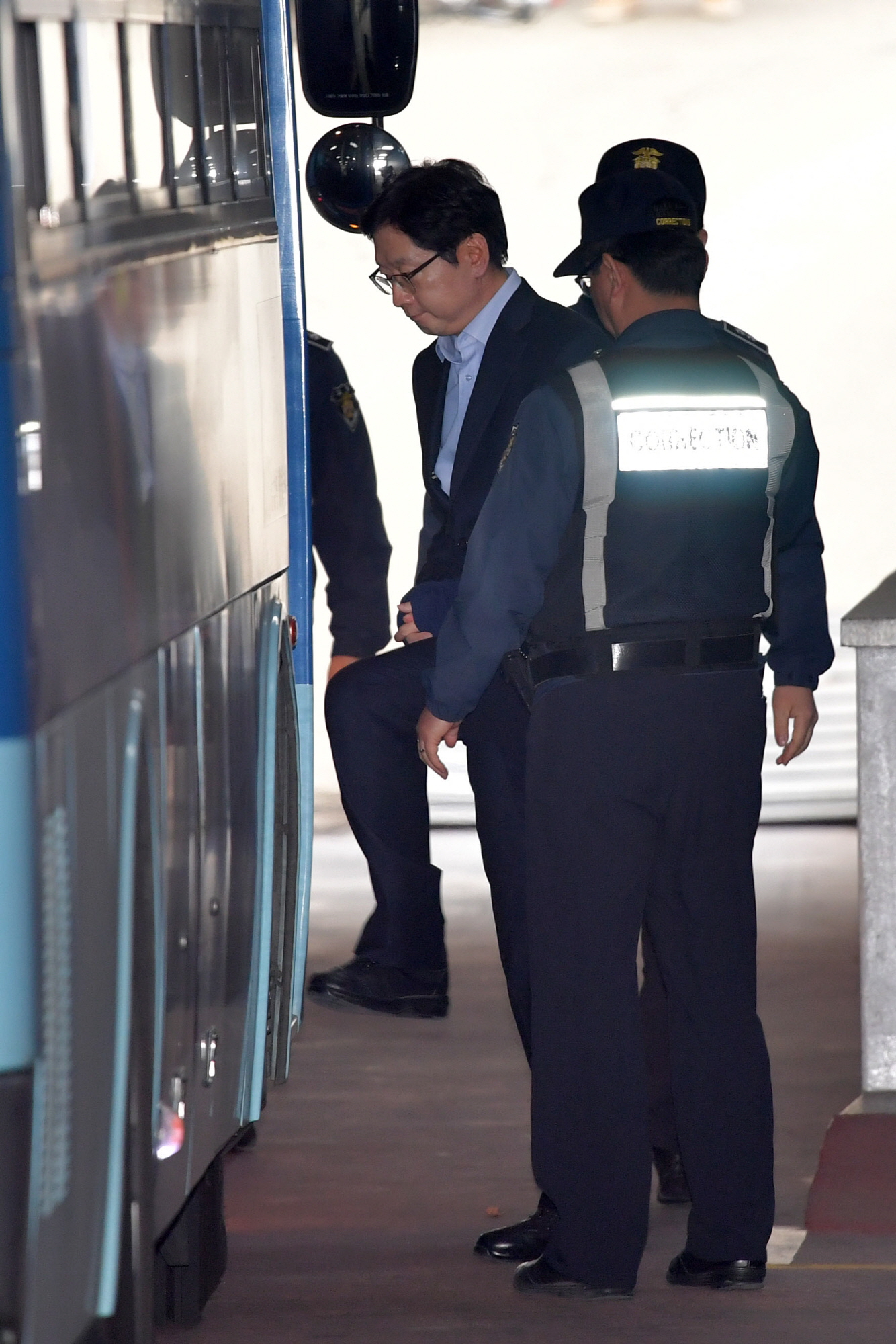 [서울=eoimage] 고성준 기자 = 1심 선고공판에서 실형을 선고받은 김경수 경남지사가 30일 오후 서울 서초구 서울중앙지방법원에서 호송차로 향하고 있다. 2019.1.30