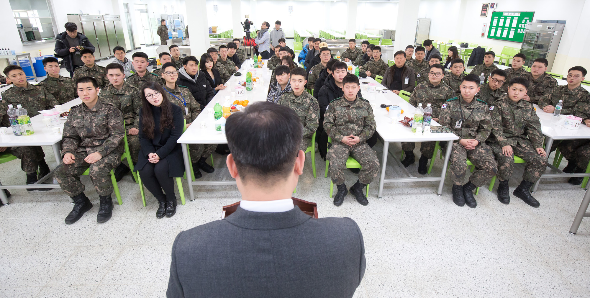 31일 오후 경기도 가평군 육군 수도 기계화 보병사단 혜산진부대에서 박태규 국방부 병영정책과장이 군장병과 장병가족들과 간담회를 하고 있다. 2019.01.31 사진/임준선기자