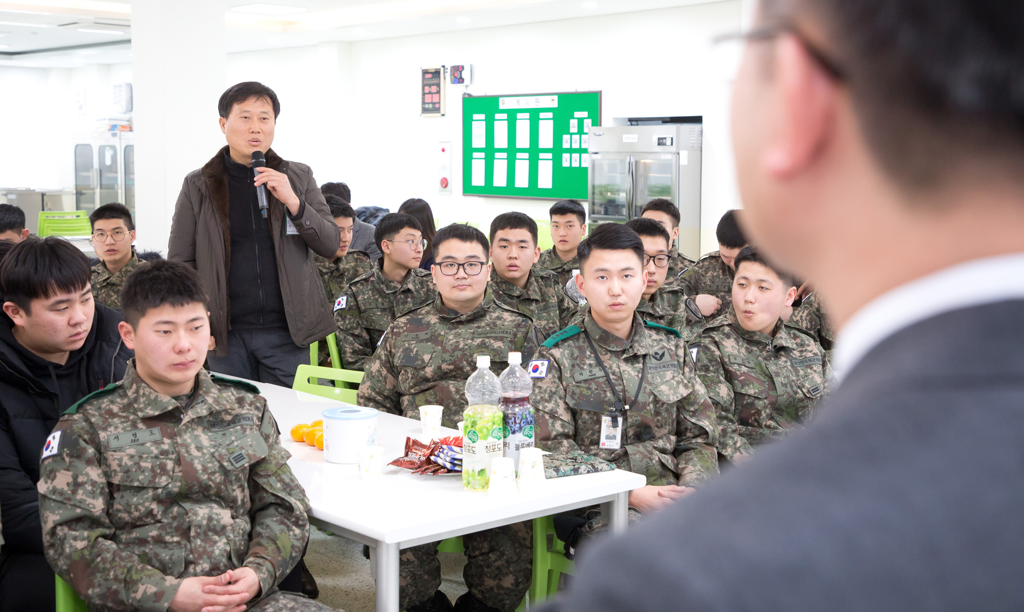 31일 오후 경기도 가평군 육군 수도 기계화 보병사단 혜산진부대에서 박태규 국방부 병영정책과장이 군장병과 장병가족들과 간담회를 하고 있다. 2019.01.31 사진/임준선기자