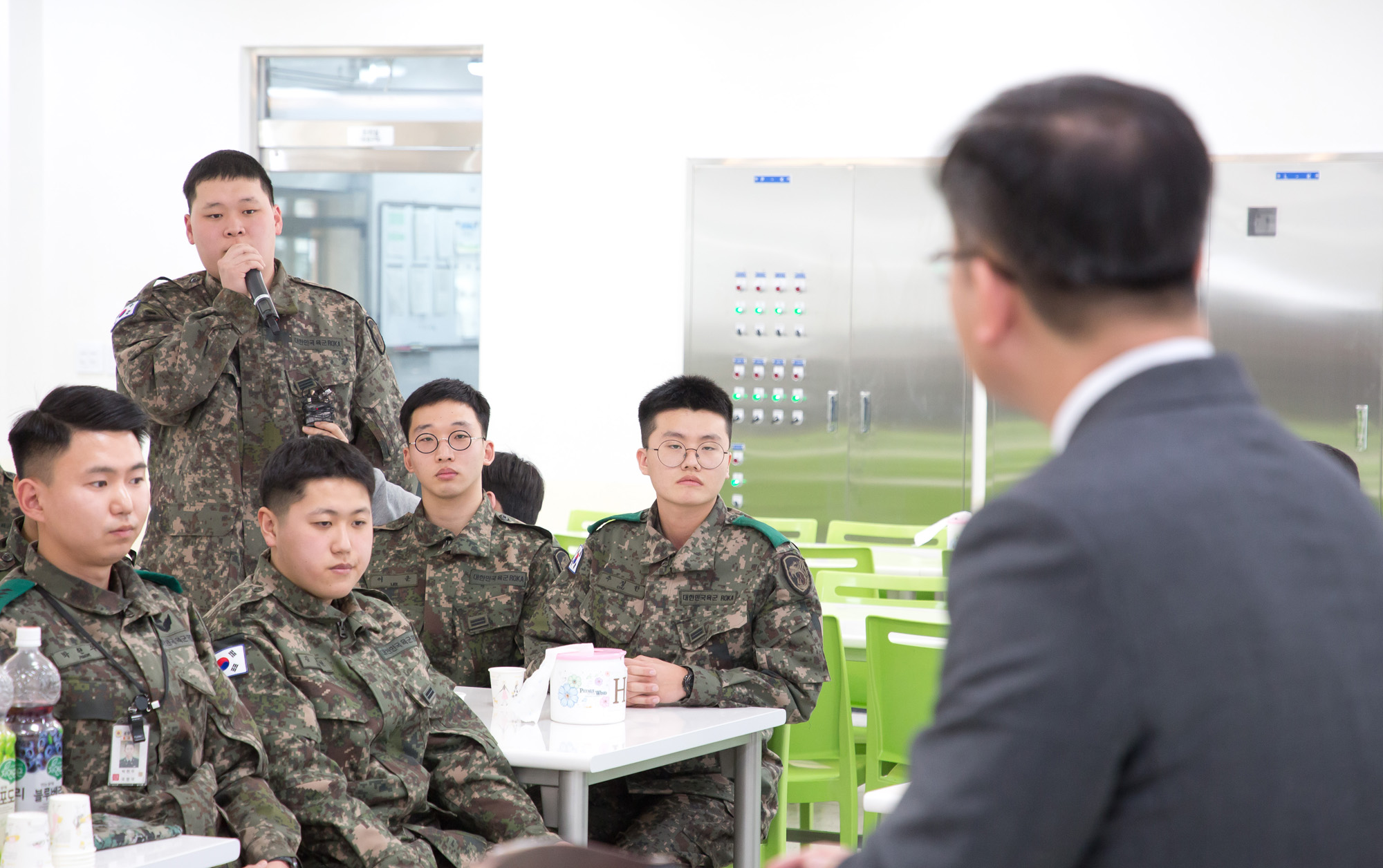 31일 오후 경기도 가평군 육군 수도 기계화 보병사단 혜산진부대에서 박태규 국방부 병영정책과장이 군장병과 장병가족들과 간담회를 하고 있다. 2019.01.31 사진/임준선기자