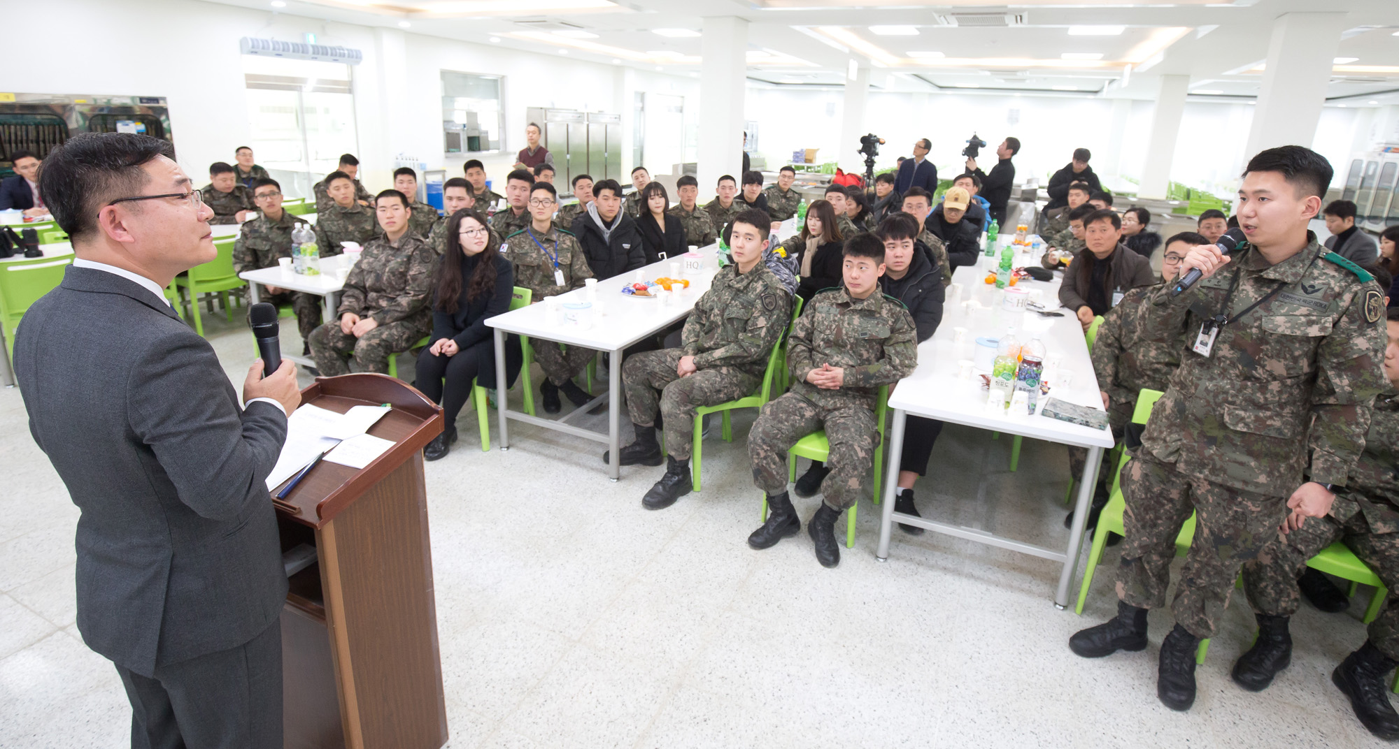 31일 오후 경기도 가평군 육군 수도 기계화 보병사단 혜산진부대에서 박태규 국방부 병영정책과장이 군장병과 장병가족들과 간담회를 하고 있다. 2019.01.31 사진/임준선기자