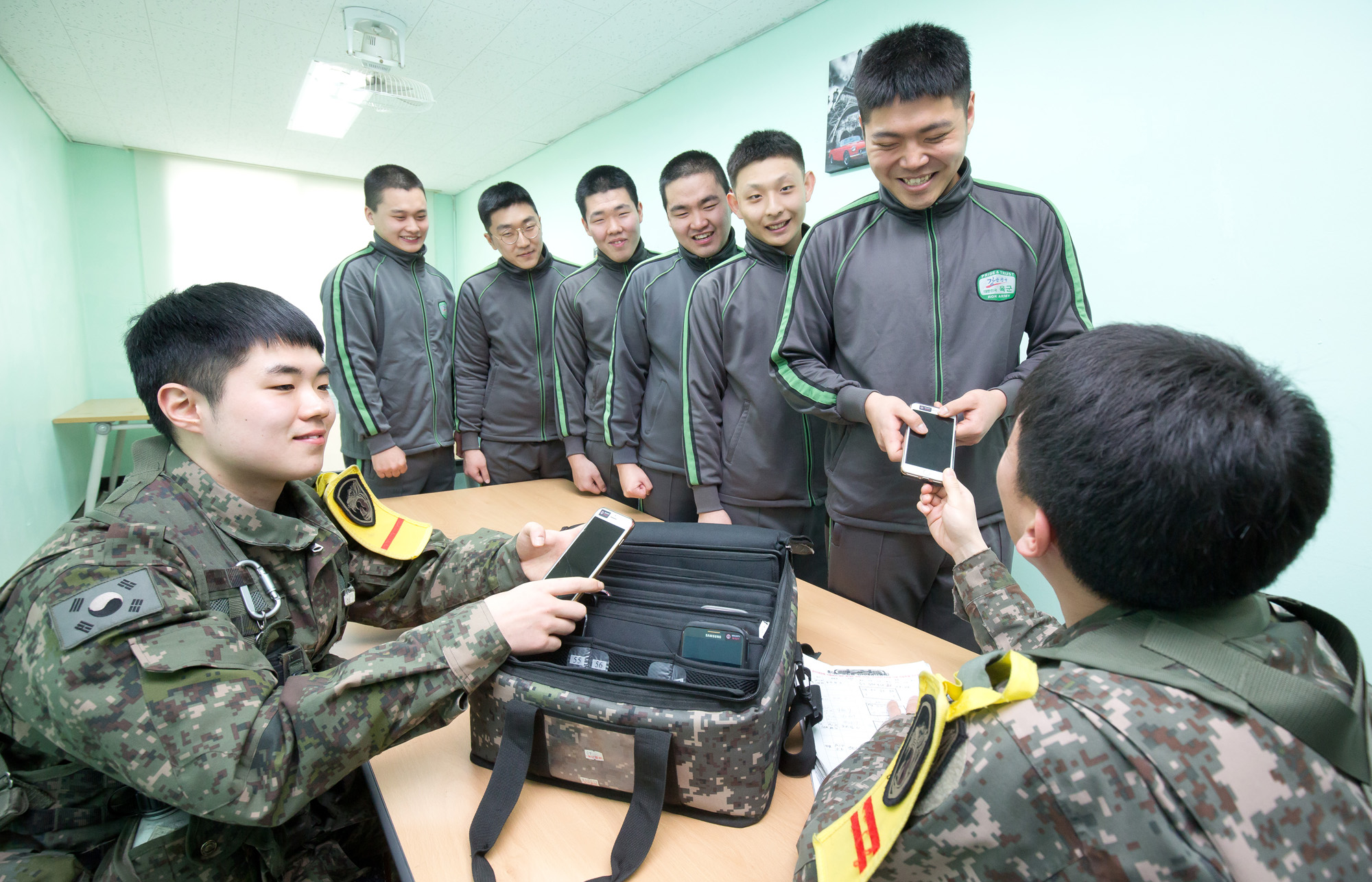 31일 오후 경기도 가평군 육군 수도 기계화 보병사단 혜산진부대에서 군장병들이 일과시간 이후, 일직사관으로 부터 보관중인 스마트폰을 수령하고 있다. 2019.01.31 사진/임준선기자 (2019.01.31 18시10 엠바고 입니다.)