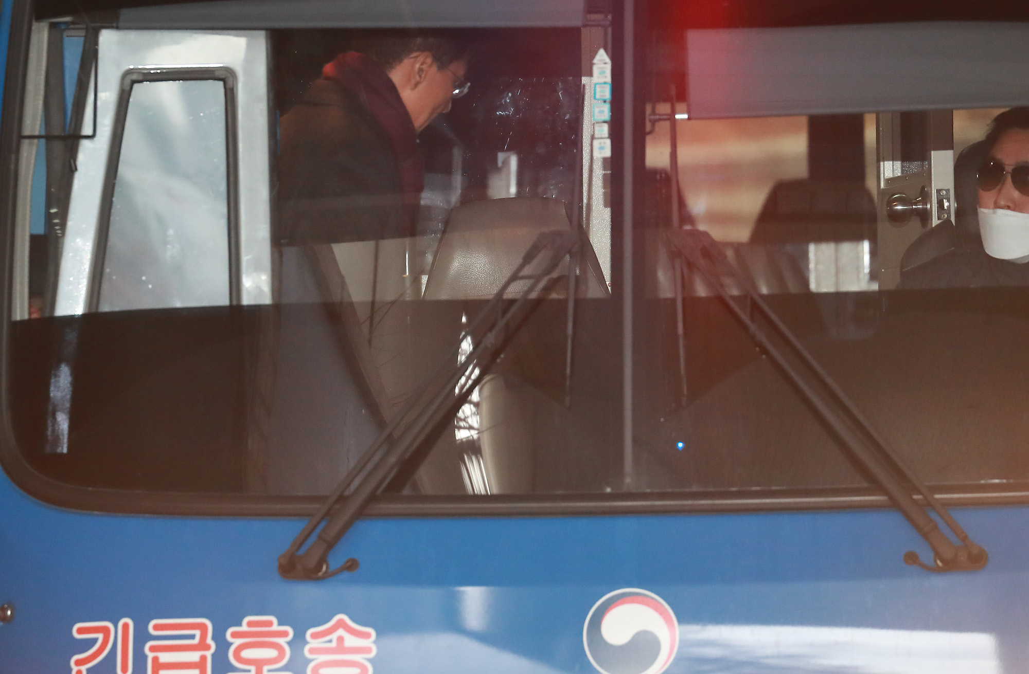 안희정 전 충남지사가 1일 서울 서초구 서울고등법원에서 열린 비서성폭행 관련 강제추행 등 항소심 선고공판에서 법정구속이 되어 호송차로 이동하고 있다. 2019.02.01 사진/임준선기자(현장풀)