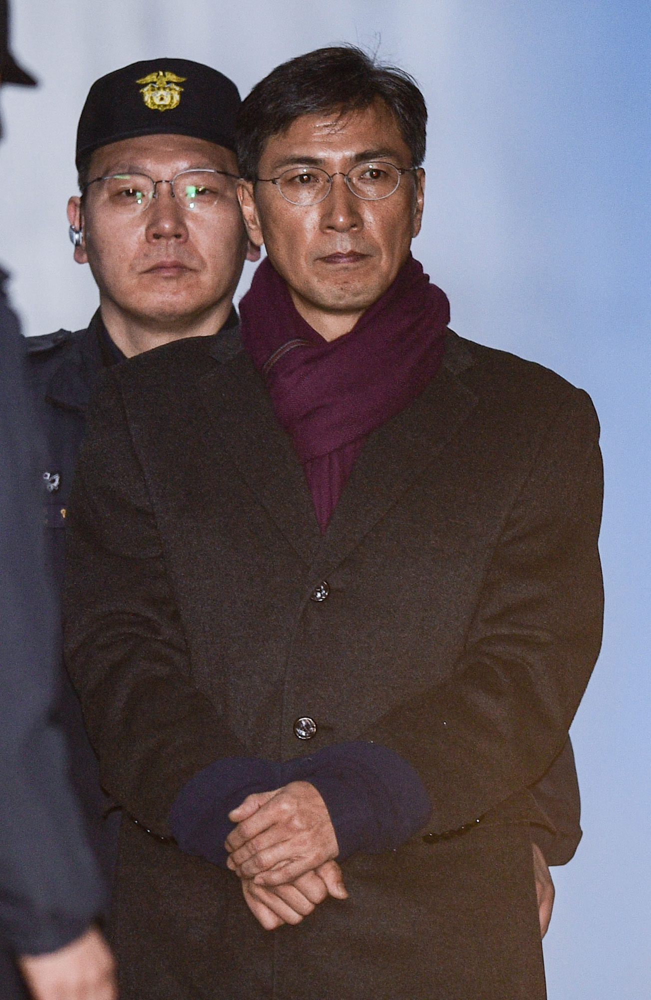 안희정 전 충남지사가 1일 서울 서초구 서울고등법원에서 열린 비서성폭행 관련 강제추행 등 항소심 선고공판에서 법정구속이 되어 호송차로 이동하고 있다. 2019.02.01 사진/임준선기자(현장풀)