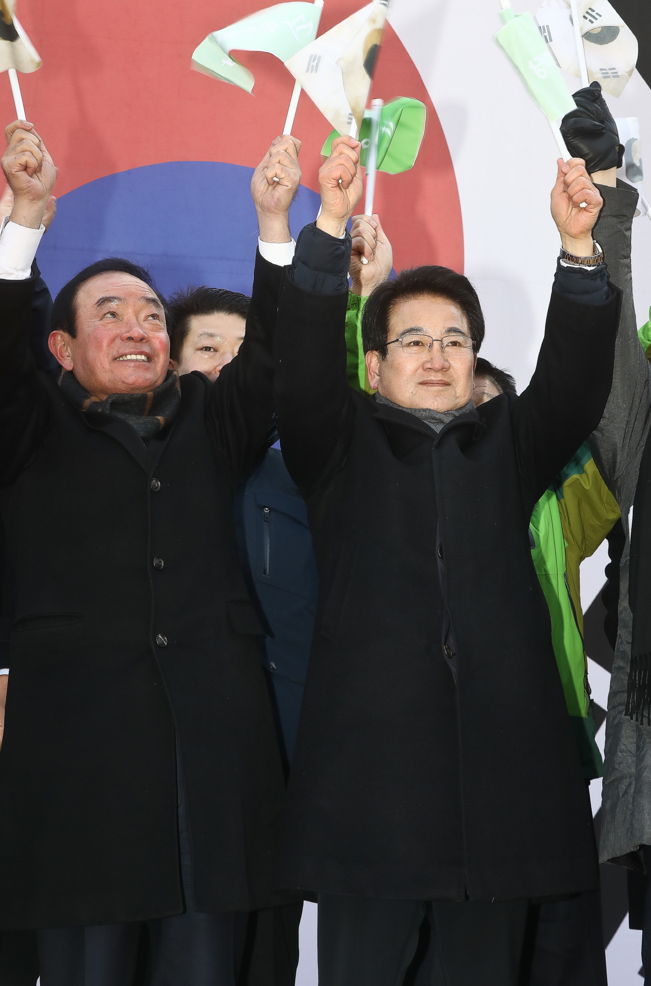 [서울=eoimage] 고성준 기자 = 정동영 민주평화당 대표가 서울 서대문형무소에서 열린 창당 1주년 기념식에 참석하고 있다. 2019.2.8