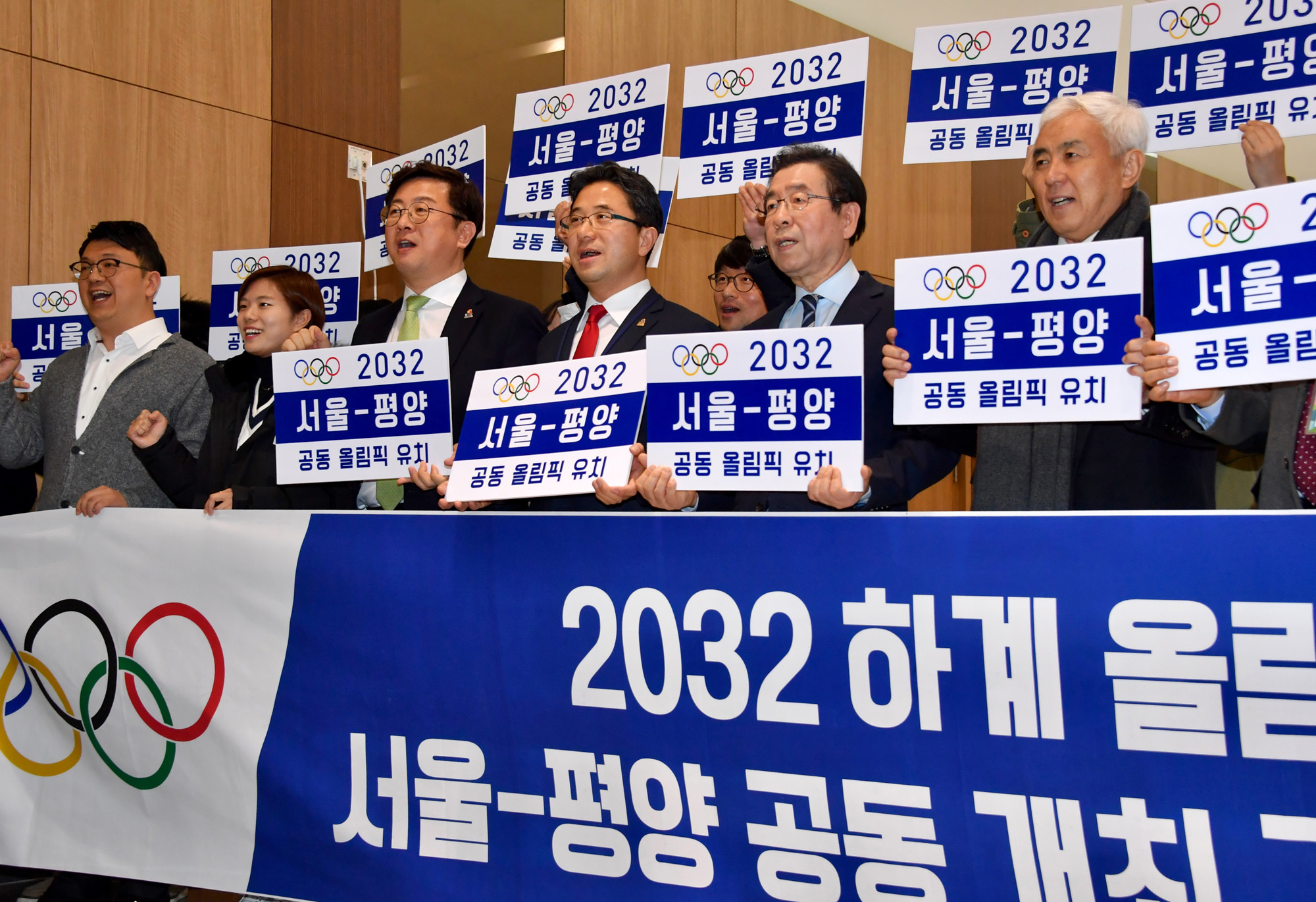 11일 충북 진천 선수촌에서 열린 ‘2032년 하계올림픽 남북공동개최 남측 유치도시선정’ 결과 발표에 앞서 박원순 서울시장이 서울 개최를 주장하고 있다. 서울시 제공