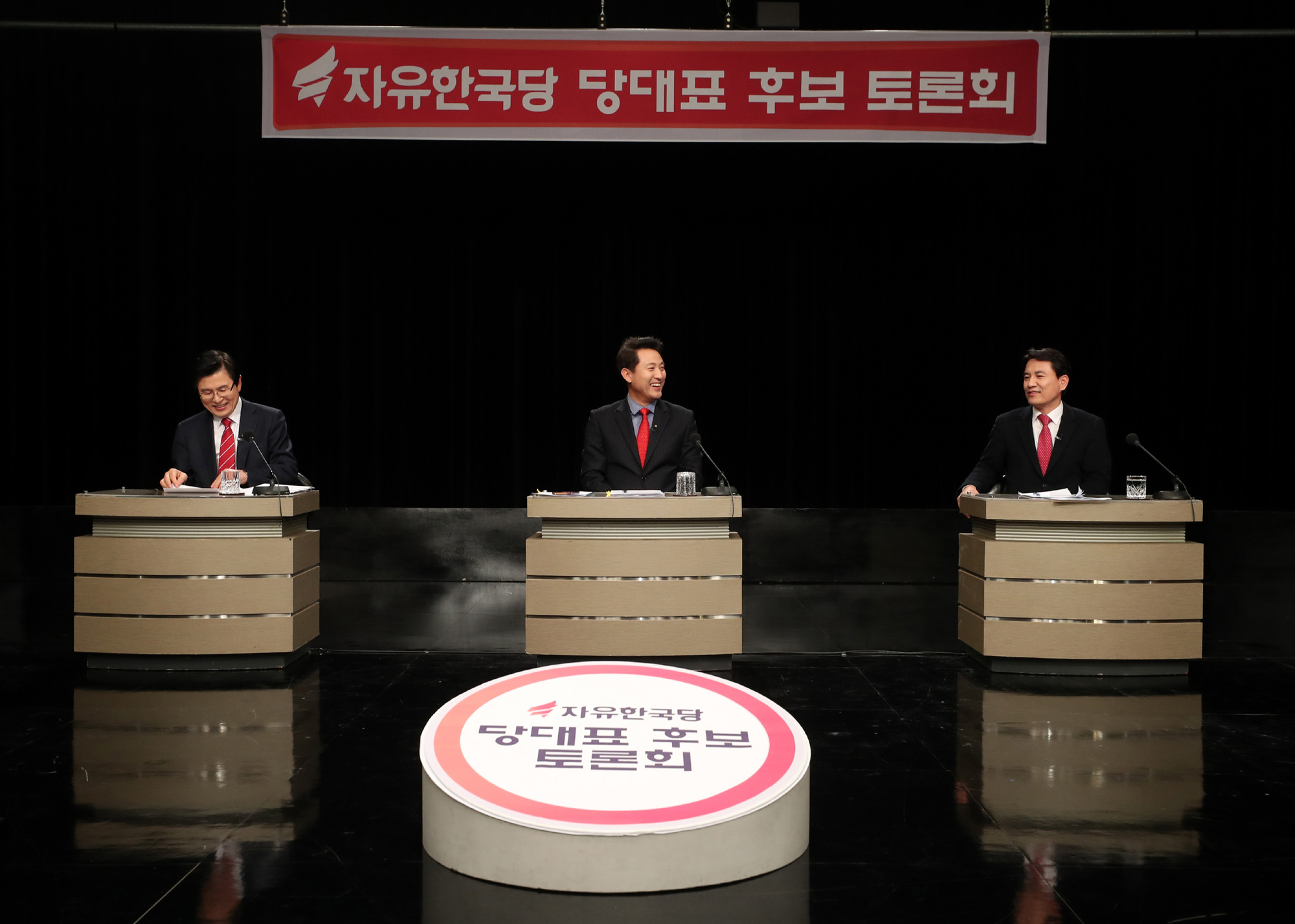 15일 오후 경기도 부천시 OBS 경인TV 스튜디오에서 자유한국당 당대표 후보 토론회가 개최됐다. 이날 토론회에는 오는 27일 치러질 전당대회 당대표 선거에 출마한 김진태, 오세훈, 황교안(가나다순) 후보가 참석했다.