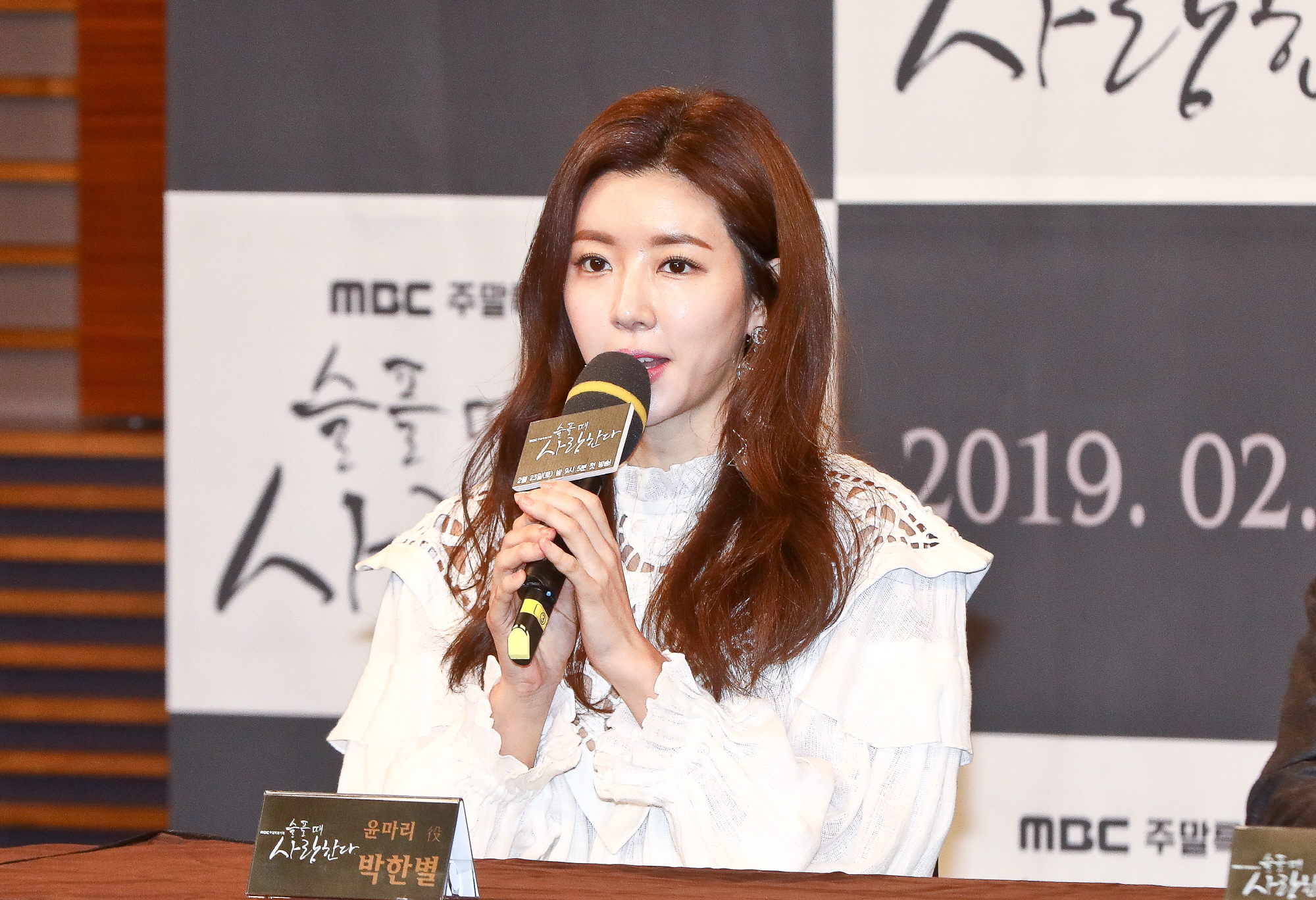 [서울=eoimage] 고성준 기자 = 21일 오후 서울 마포구 MBC 상암사옥 골든마우스홀에서 열린 MBC 주말드라마 '슬플 때 사랑한다' 제작발표회에 배우 박한별이 참석하고 있다. 2019.2.21