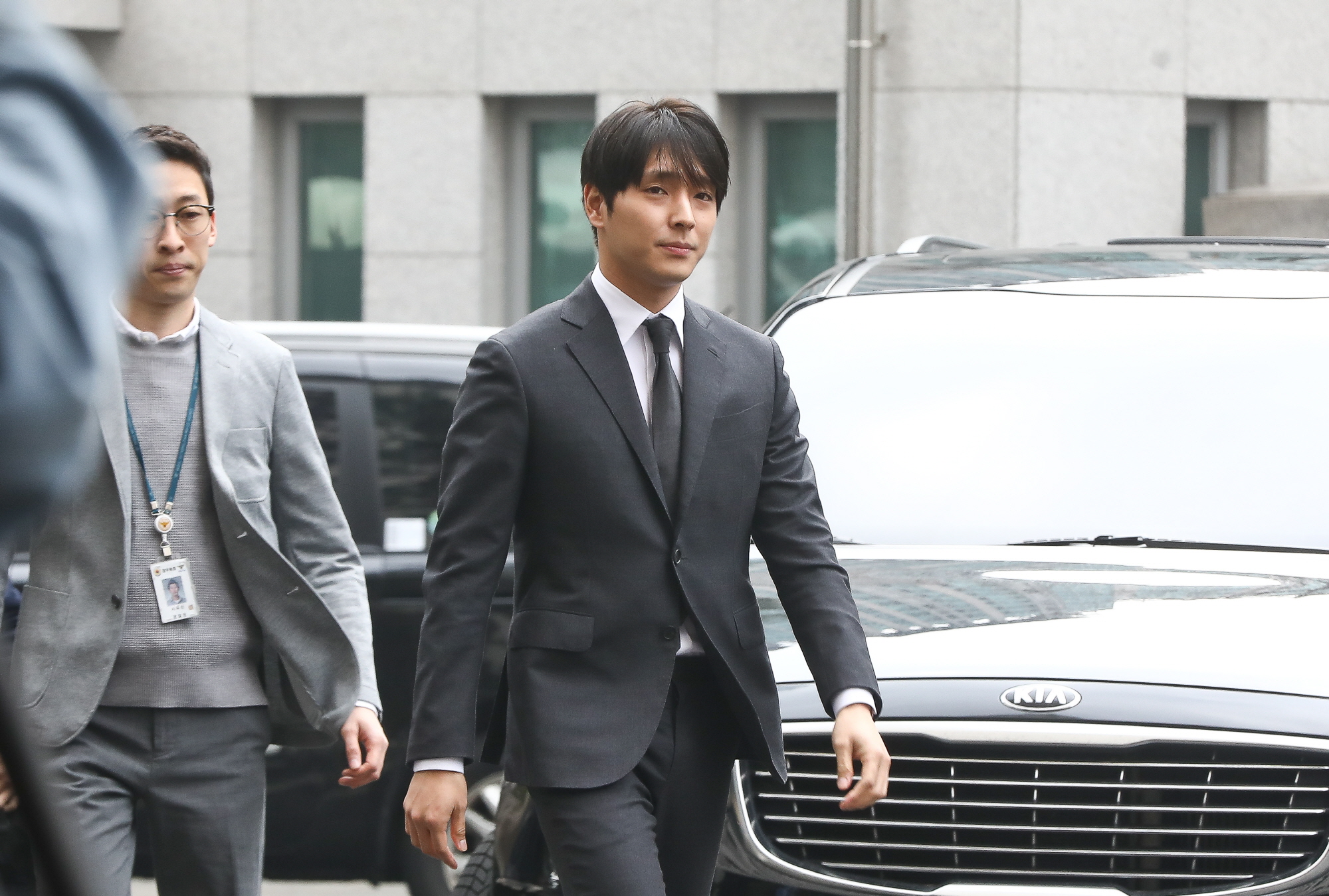 [서울=eoimage] 고성준 기자 = 불법동영상 유포 및 경찰유착 혐의를 받고있는 가수 최종훈이 16일 오전 서울 종로구 서울지방경찰청에 출석하고 있다. 2019.3.16