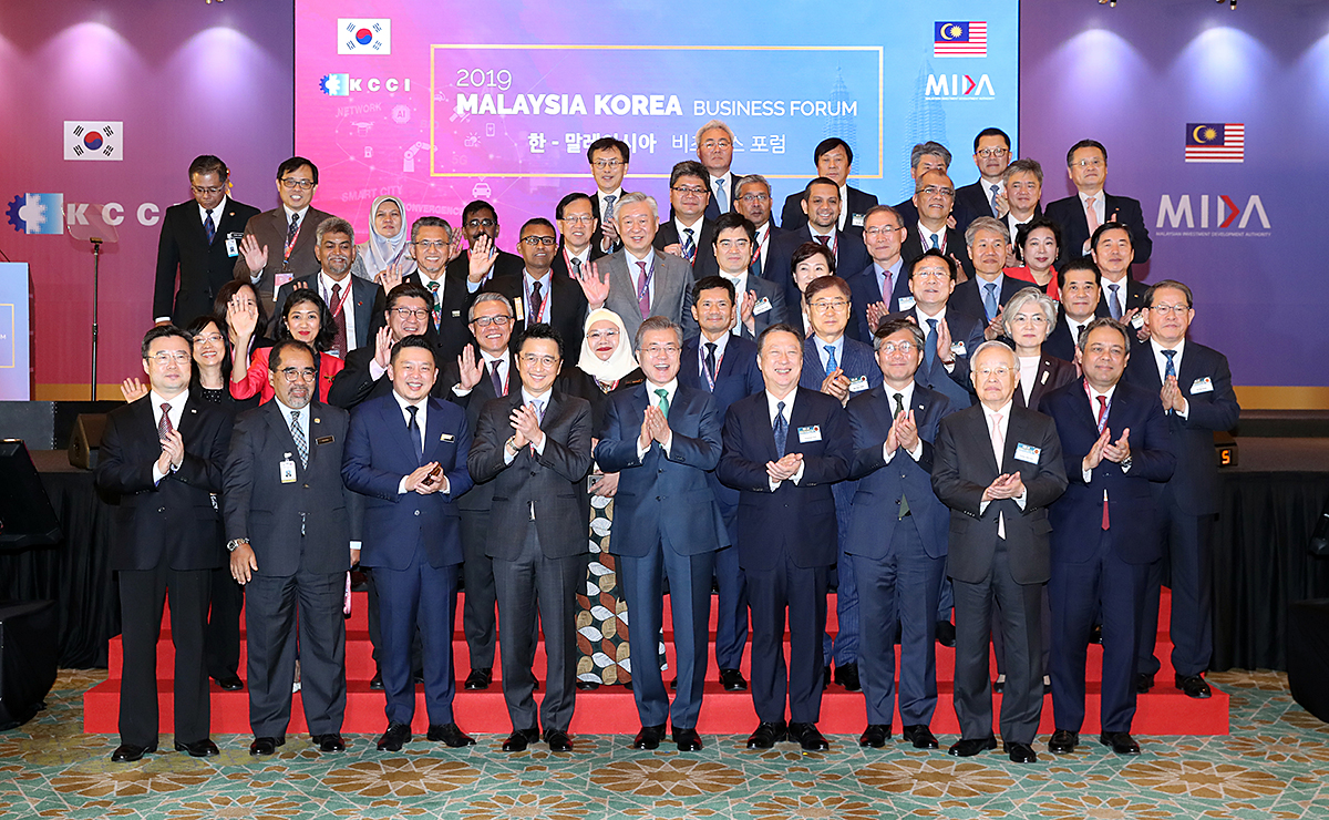 말레이시아를 국빈 방문 중인 문재인 대통령이 14일 쿠알라룸푸르 만다린 호텔에서 열린 한-말레이시아 비즈니스 포럼애 참석하고 있다.