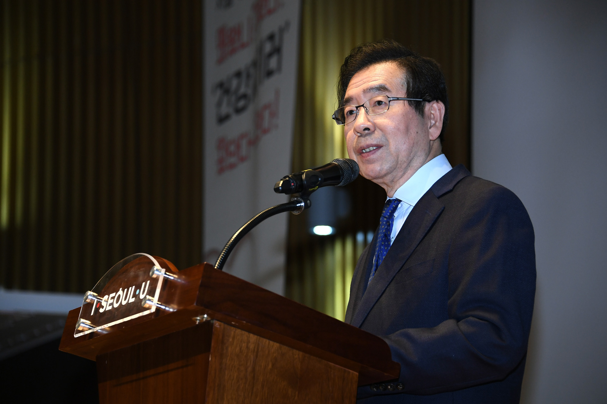 박원순 서울시장이 7일 오후 중구 서울시청에서 열린 '서울케어-건강돌봄 선포식'에 참석해 인사말을 하고 있다. 서울시 제공