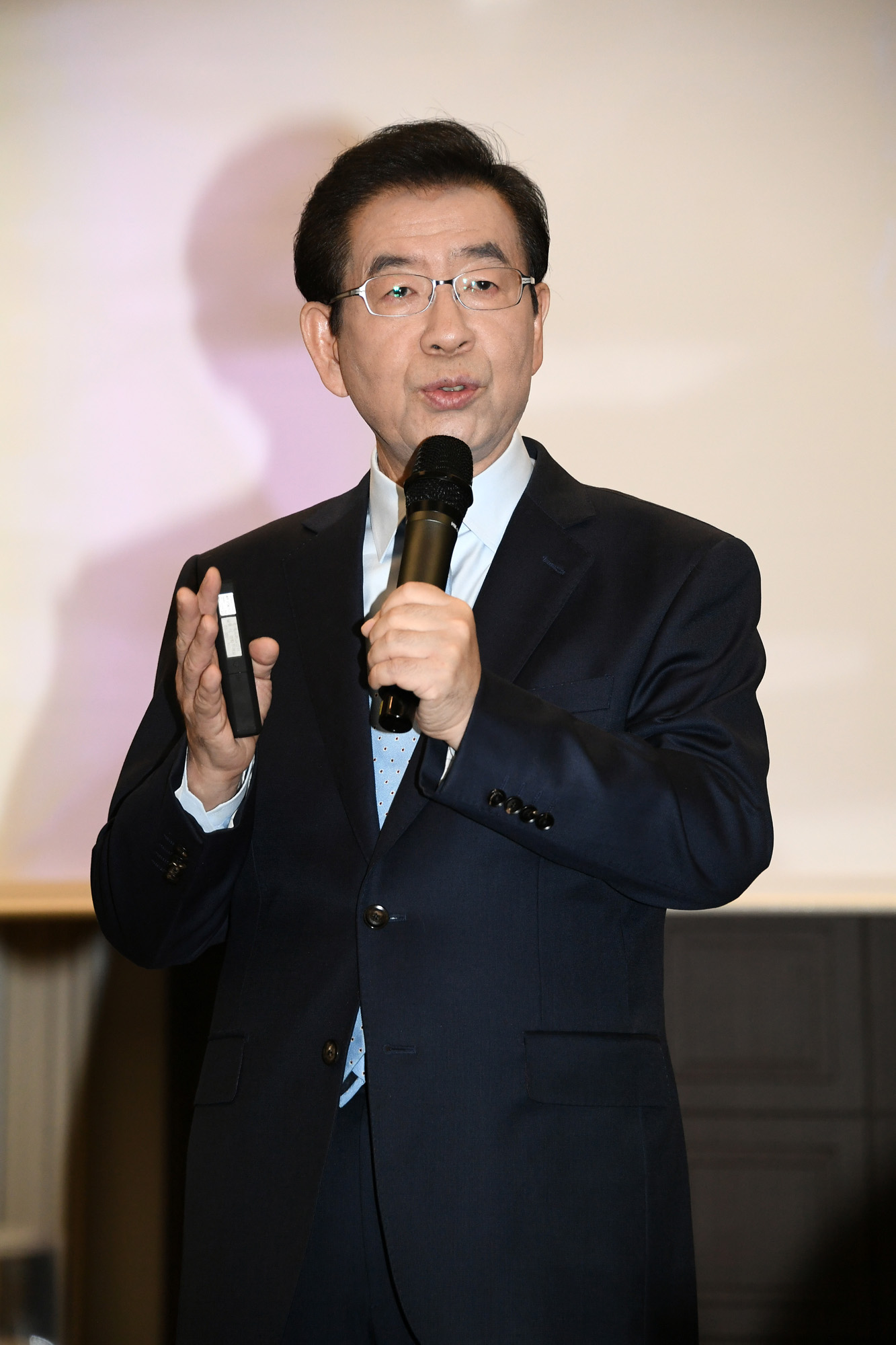 박원순 서울시장이 15일 오전 서울 중구 프레스센터에서 서울복지재단 주최로 열린 '미래복지 CEO 조찬포럼'에서 강연을 하고 있다. 서울시 제공
