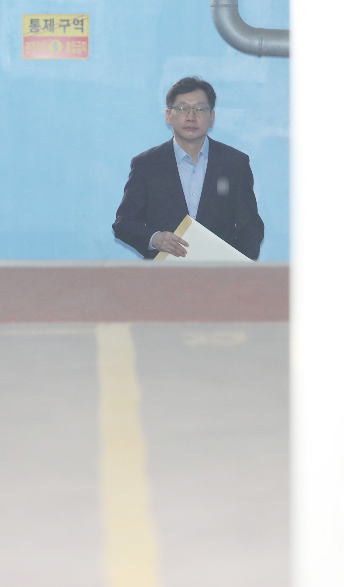 [서울=eoimage] 고성준 기자 = 댓글조작 혐의를 받는 김경수 경남지사가 19일 오전 서울 서초구 서울중앙지방법원에서 열린 항소심에 출석하고 있다. 2019.3.19