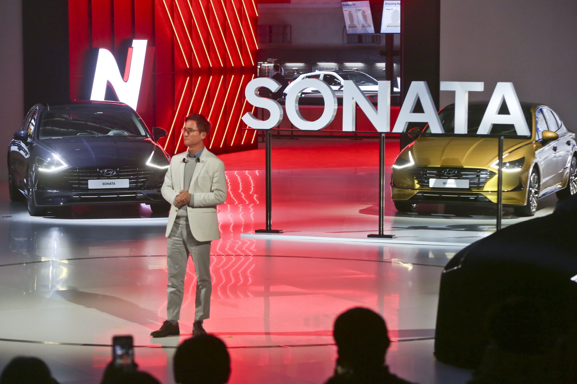 [고양=eoimage] 고성준 기자 = 28일 오전 경기도 고양시 일산킨텍스에서 열린 2019서울모터쇼에서 이광국 현대자동차 국내영업본부장이 발표를 하고있다. 2019.3.28