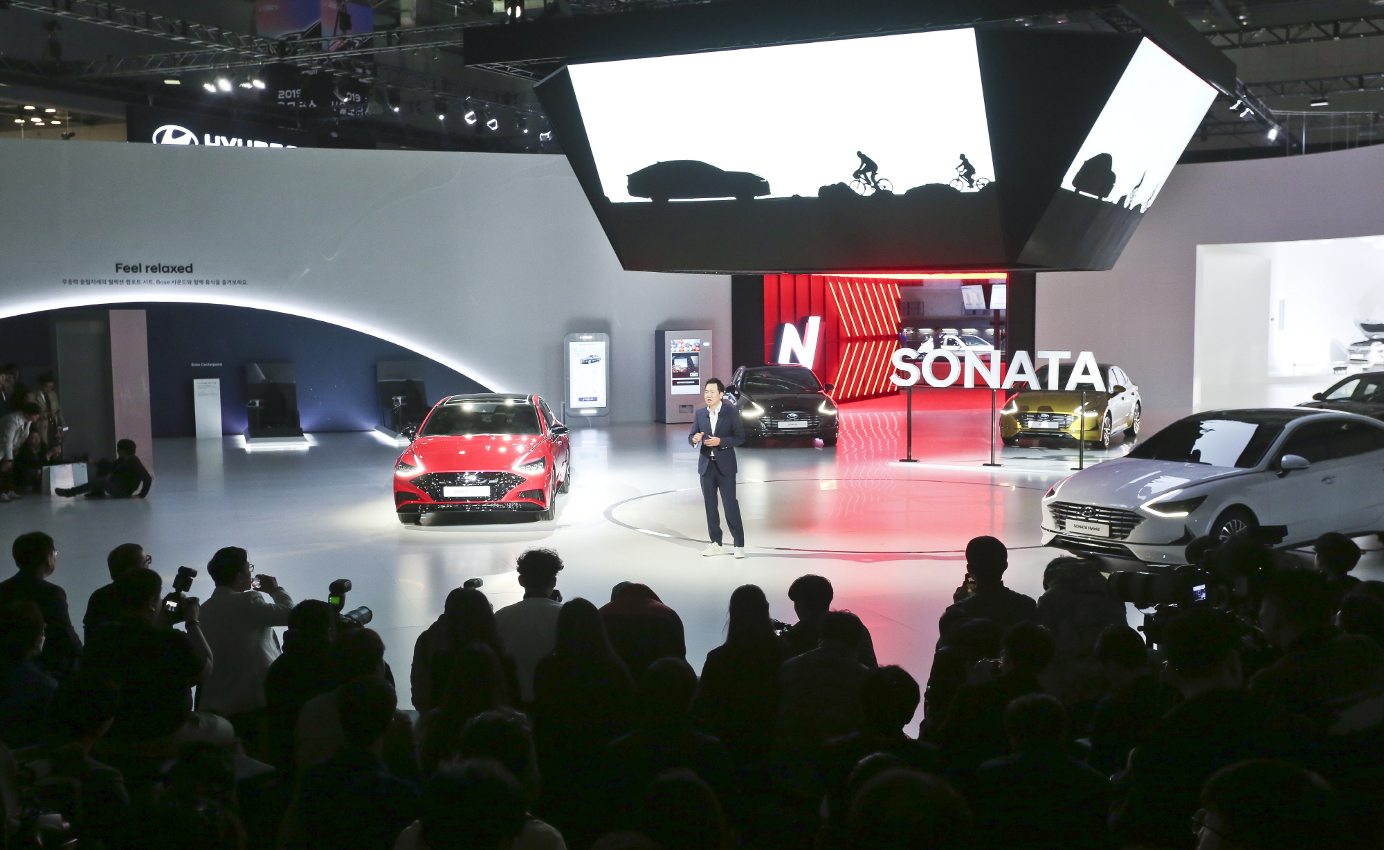 [고양=eoimage] 고성준 기자 = 28일 오전 경기도 고양시 일산킨텍스에서 열린 2019서울모터쇼에서 이상엽 현대자동차 디자이너 전무가 발표를 하고있다. 2019.3.28