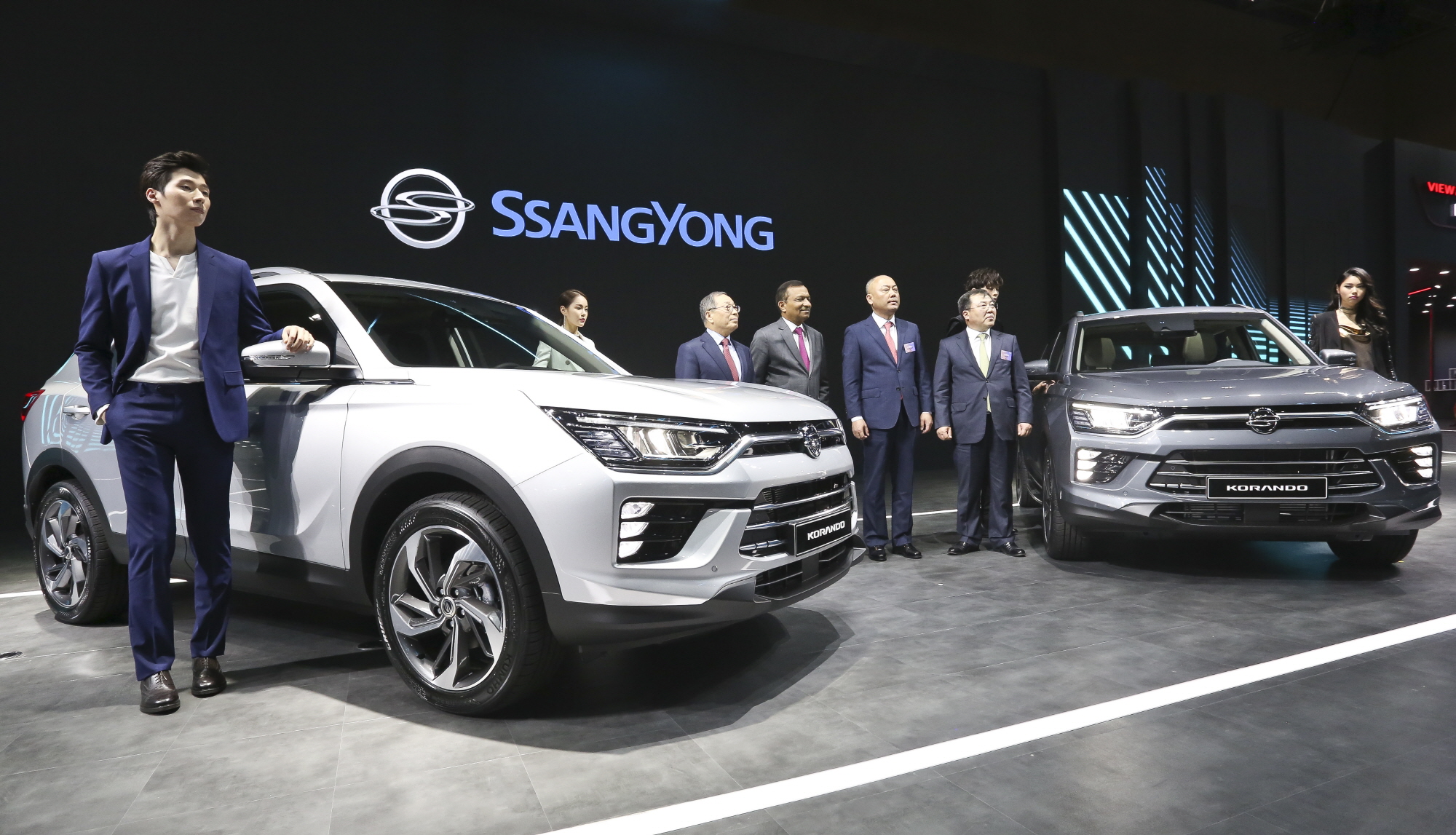 [고양=eoimage] 고성준 기자 = 28일 오전 경기도 고양시 일산킨텍스에서 열린 2019서울모터쇼에서 최종식 쌍용자동차 대표와 관계자들이 올뉴 코란도를 선보이고 있다.. 2019.3.28
