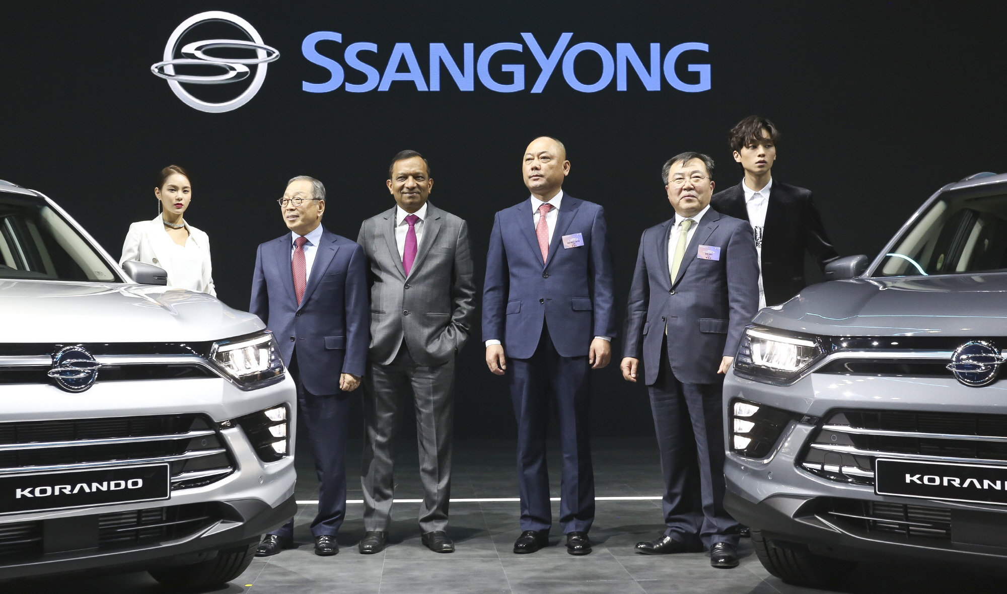 [고양=eoimage] 고성준 기자 = 28일 오전 경기도 고양시 일산킨텍스에서 열린 2019서울모터쇼에서 최종식 쌍용자동차 대표와 관계자들이 올뉴 코란도를 선보이고 있다.. 2019.3.28