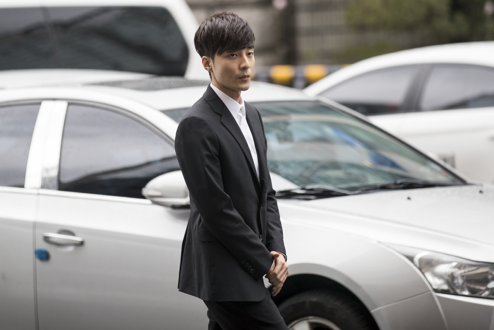 [서울=eoimage] 고성준 기자 = 음란물 유포 혐의를 받고있는 가수 로이킴(본명 김상우·26)이 10일 오후 서울지방경찰청에 피의자 신분으로 출석하고 있다. 2019.4.10