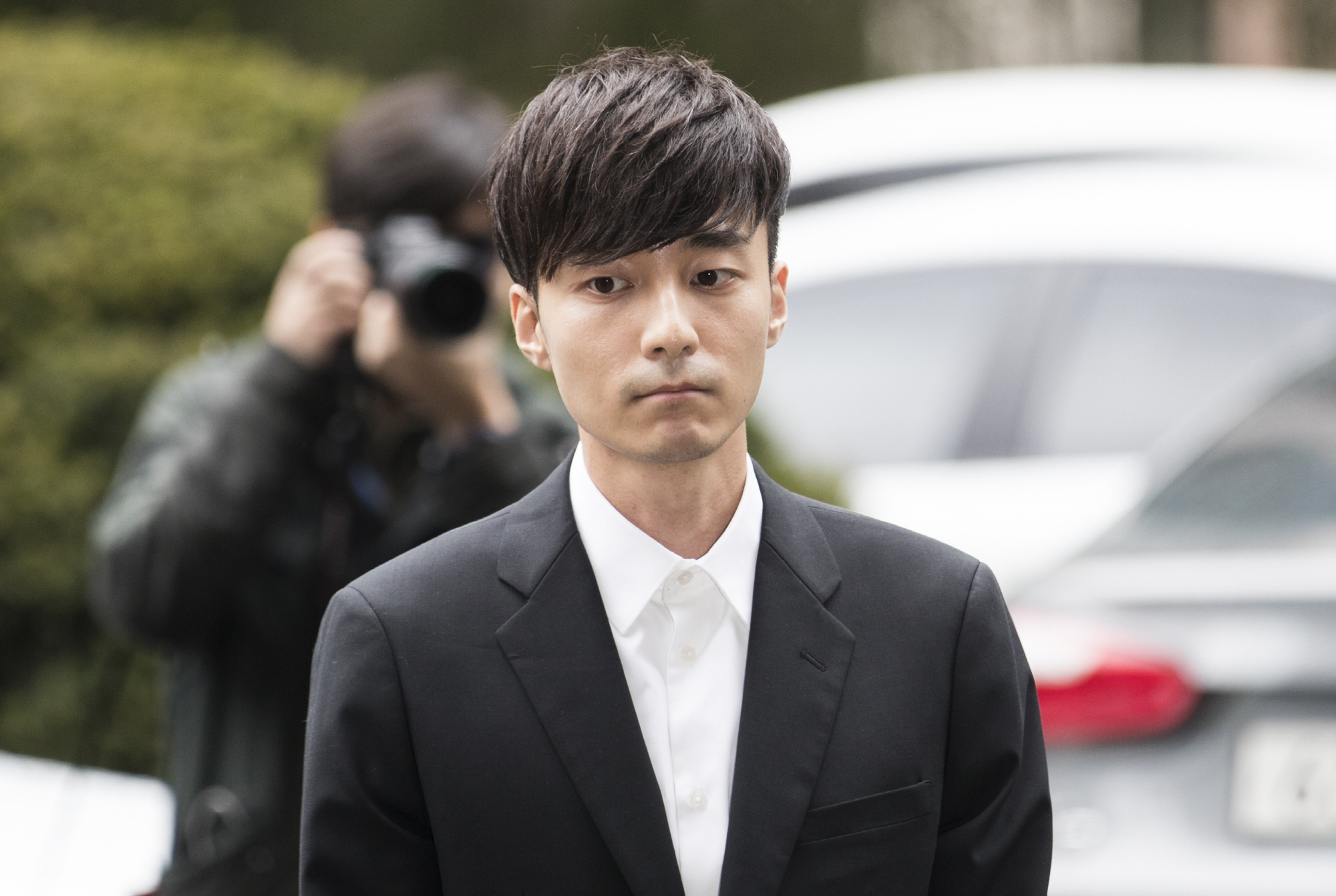 [서울=eoimage] 고성준 기자 = 음란물 유포 혐의를 받고있는 가수 로이킴(본명 김상우·26)이 10일 오후 서울지방경찰청에 피의자 신분으로 출석하고 있다. 2019.4.10