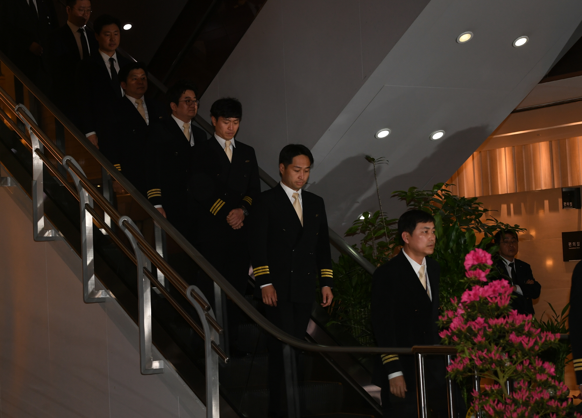 대한항공 조종사들이 12일 오후 서울 서대문구 신촌 세브란스병원 장례식장에 마련된 고(故) 조양호 회장 빈소로 향하고 있다. 2019.4.12