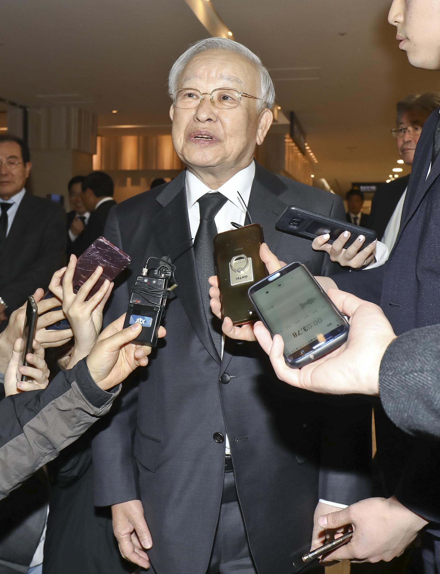 손경식 한국경영자총협회 회장이 12일 오후 서울 서대문구 신촌세브란스병원 장례식장에 마련된 고(故)조양호 한진그룹 회장 빈소에서 조문을 마친 뒤 취재진의 질문을 받고있다. 2019.4.12 일요신문 고성준 기자