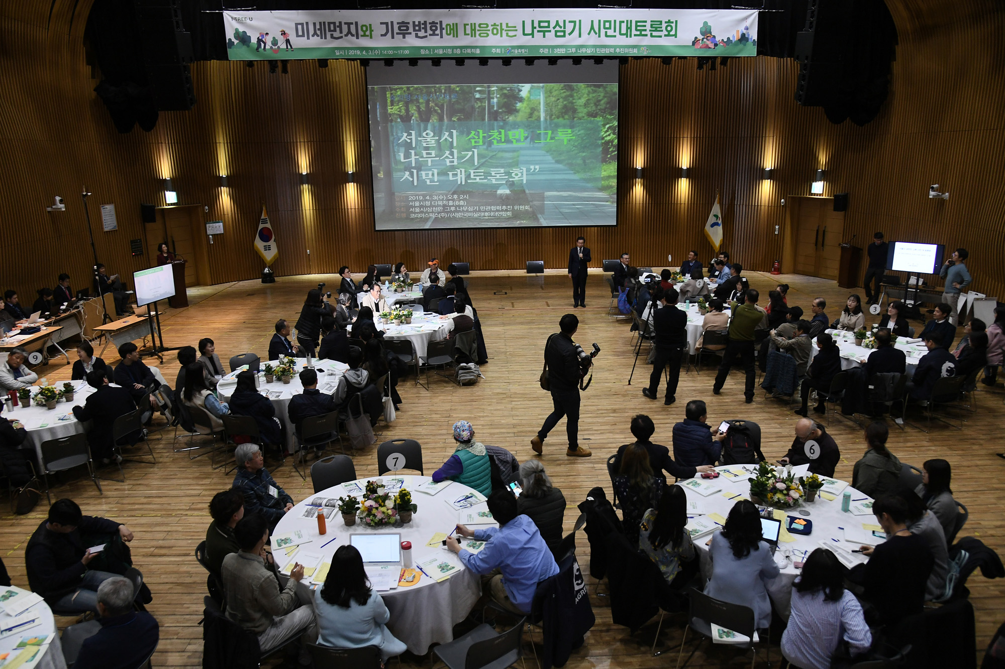 박원순 서울시장이 3일 오후 서울 중구 서울시청 다목적홀에서 열린 ‘미세먼지와 기후변화에 대응하는 나무심기 시민대토론회’에서 인사말을 하고 있다. 서울시 제공
