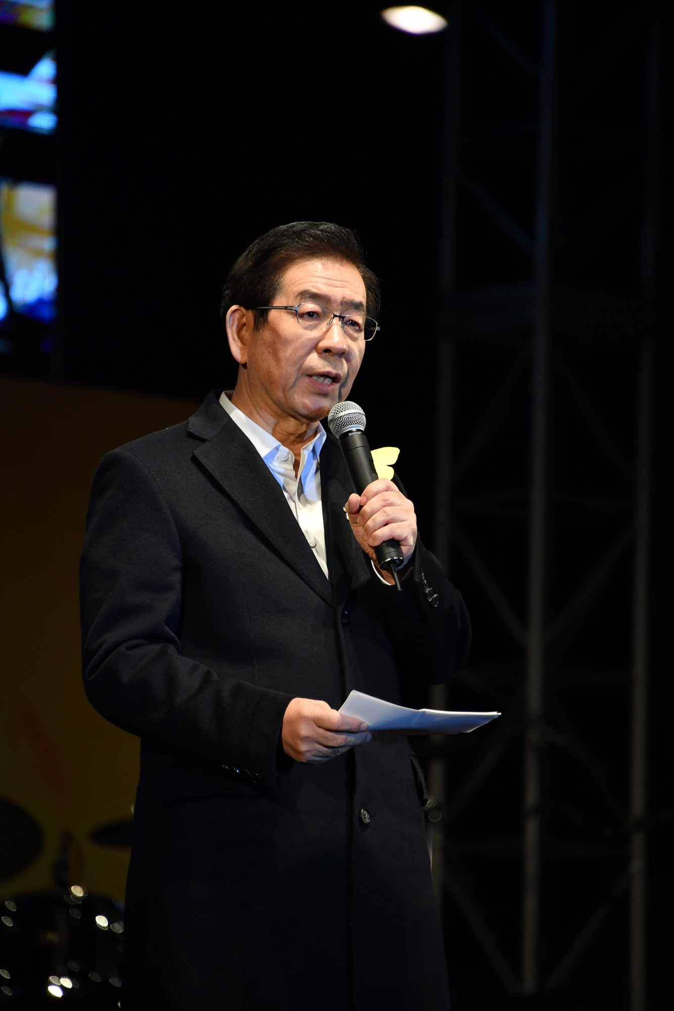 박원순 서울시장은 세월호 참사 5주기를 앞두고 13일 오후 광화문광장(북측광장)에서 열리는 '세월호 참사 5주기 추모행사'에 참석하고 있다. 서울시 제공