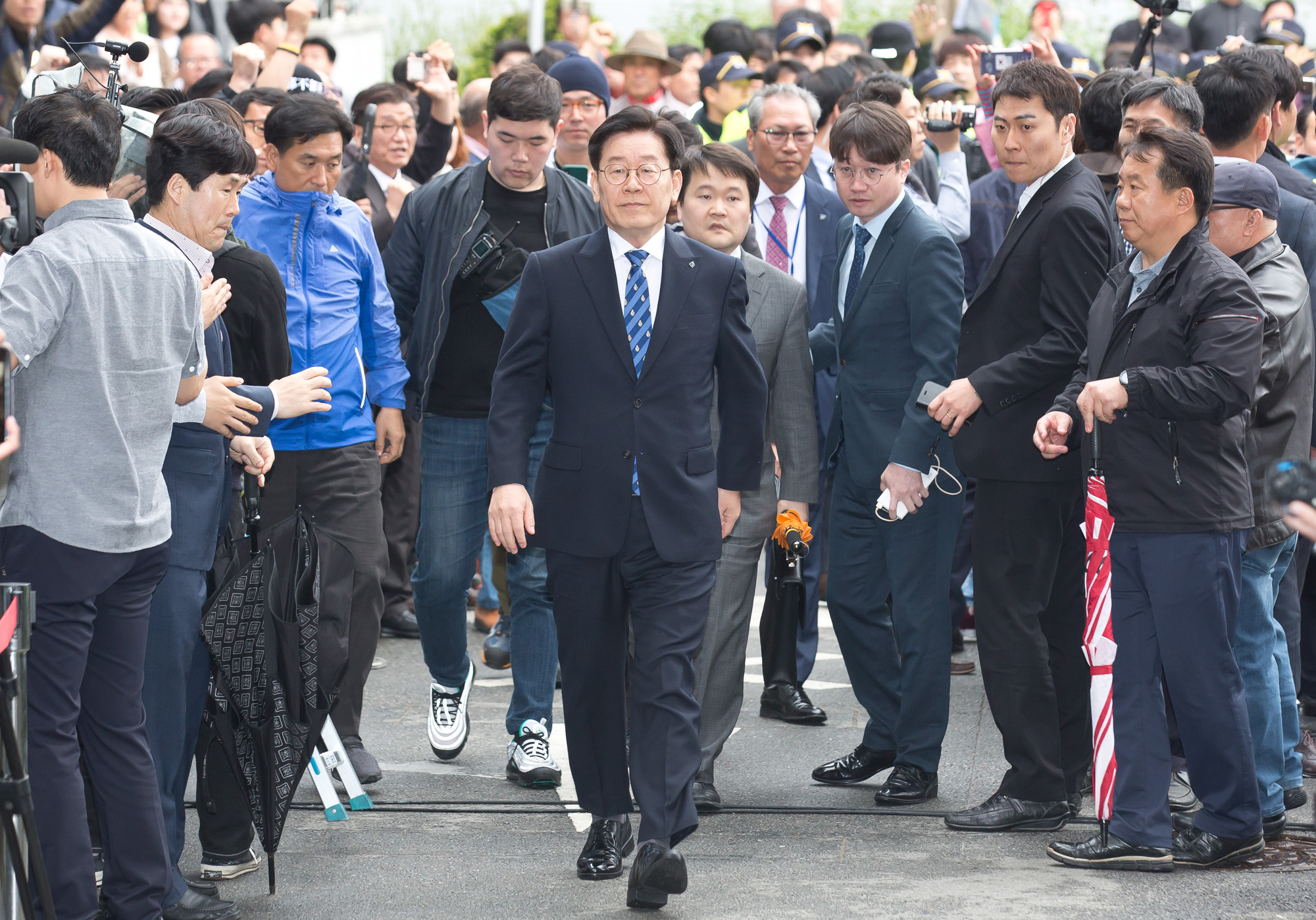 [성남=eoimage] 임준선 기자 = 공직선거법상 허위사실 공표와 직권남용권리행사방해 혐의 등으로 기소된 이재명 경기지사가 25일 오후 경기도 성남시 수정구 수원지방법원 성남지원에서 열린 결심공판에 출석하고 있다. 2019.04.25