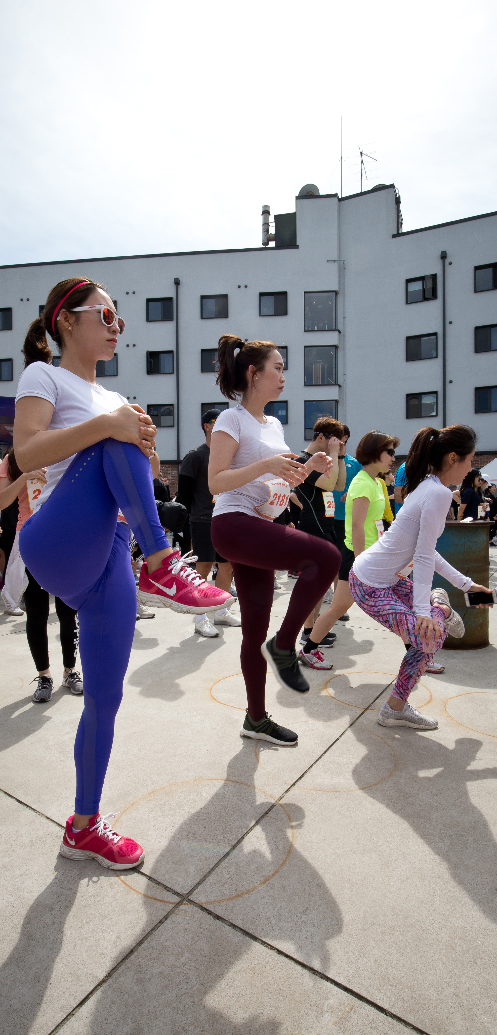 참가자들이 식전행사로 몸풀기(스트레칭)를 하고 있다.