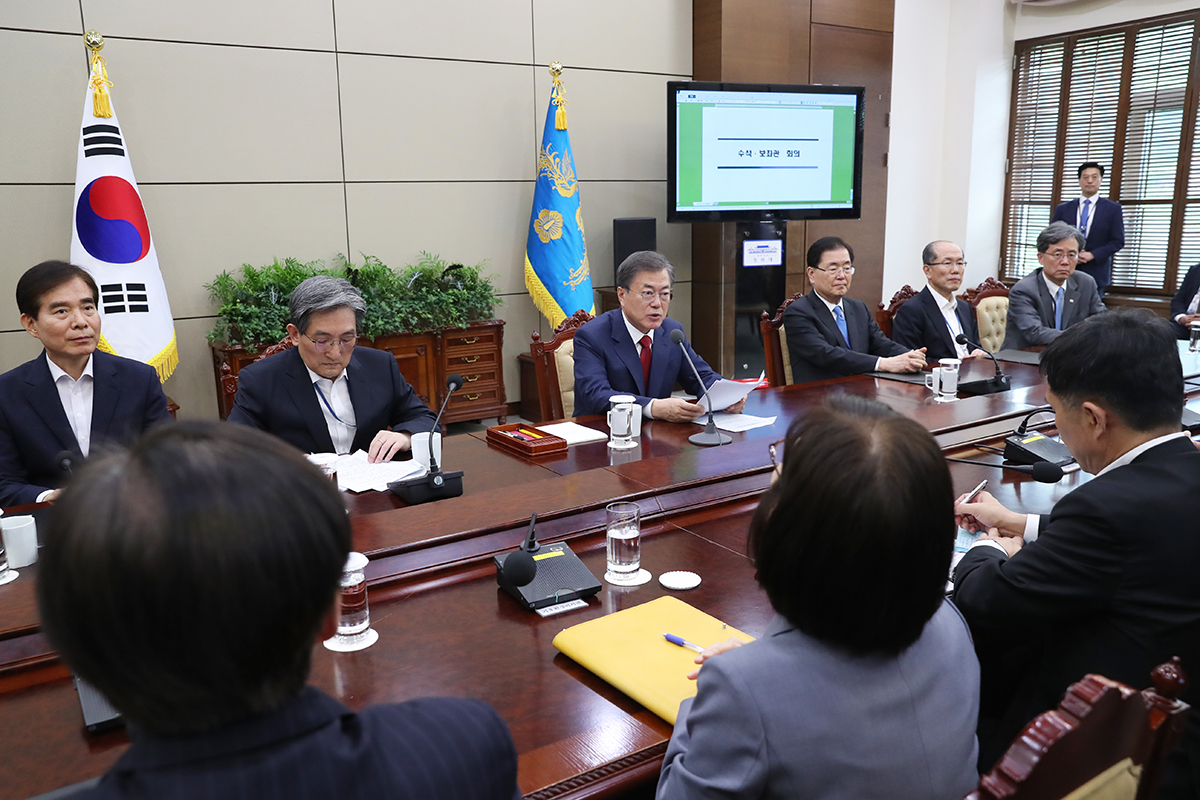 문재인 대통령이 29일 오후 청와대에서 열린 수석·보좌관 회의에서 모두발언을 하고 있다.