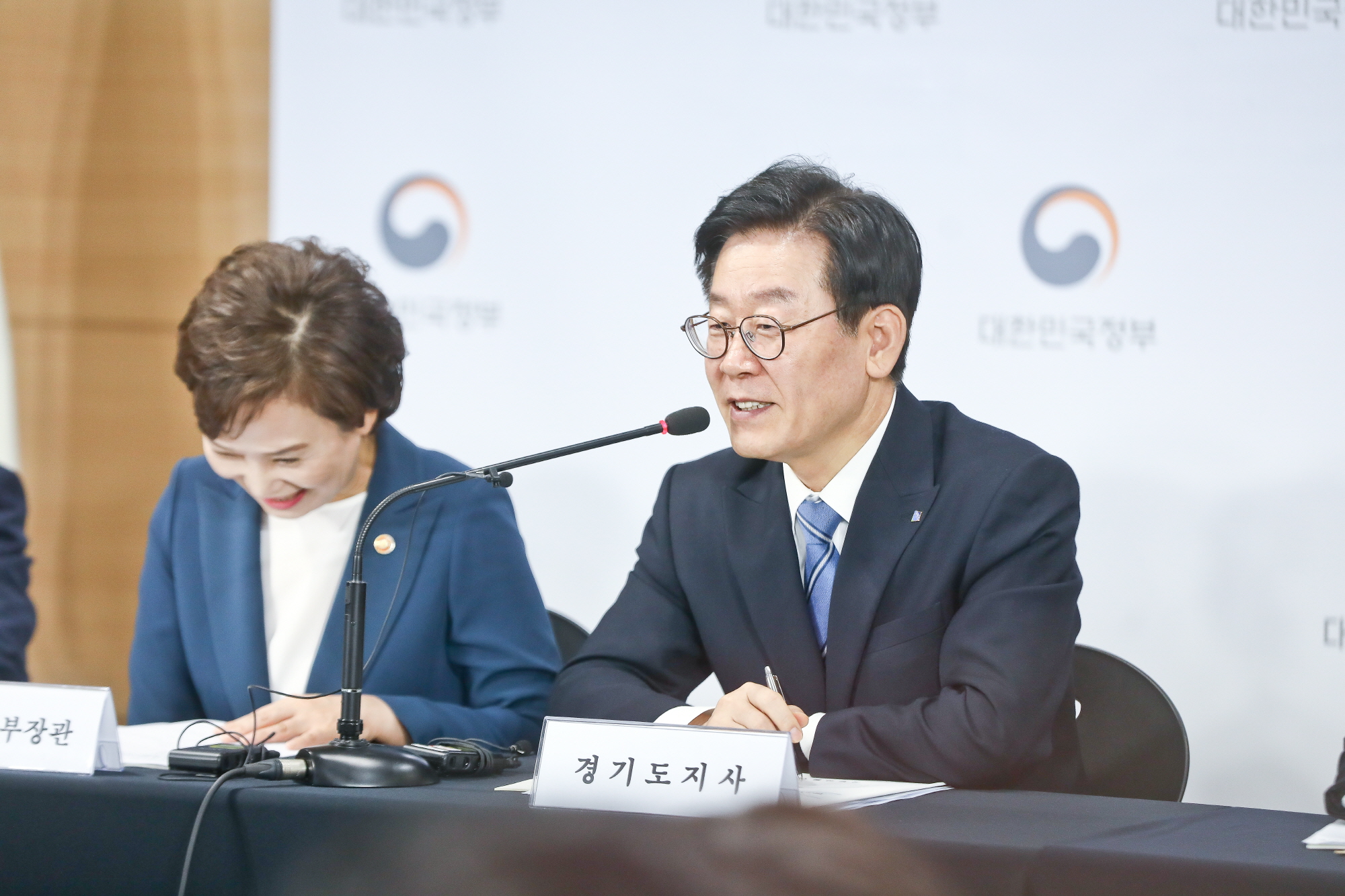 [서울=eoimage] 고성준 기자 = 7일 오후 이재명 경기도지사가 서울 종로구 서울정부청사에서 수도권 30만호 주택공급 방안에 따른 제3차 신규택지 추진계획 발표에 참석해 발언하고 있다. 2019.5.7