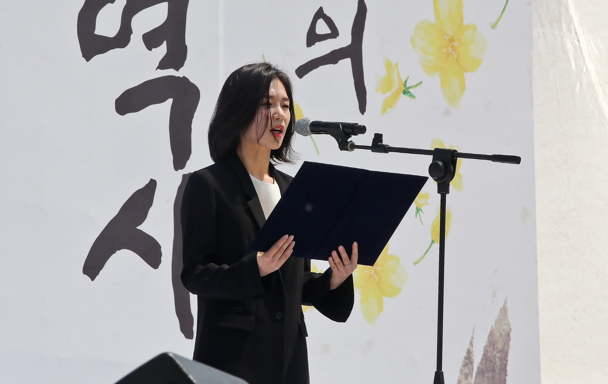 [서울=eoimage] 고성준 기자 = 11일 오전 서울 광화문광장에서 열린 제125주년 동학농민혁명 기념식에 배우 한예리가 참석하고 있다. 2019.5.11