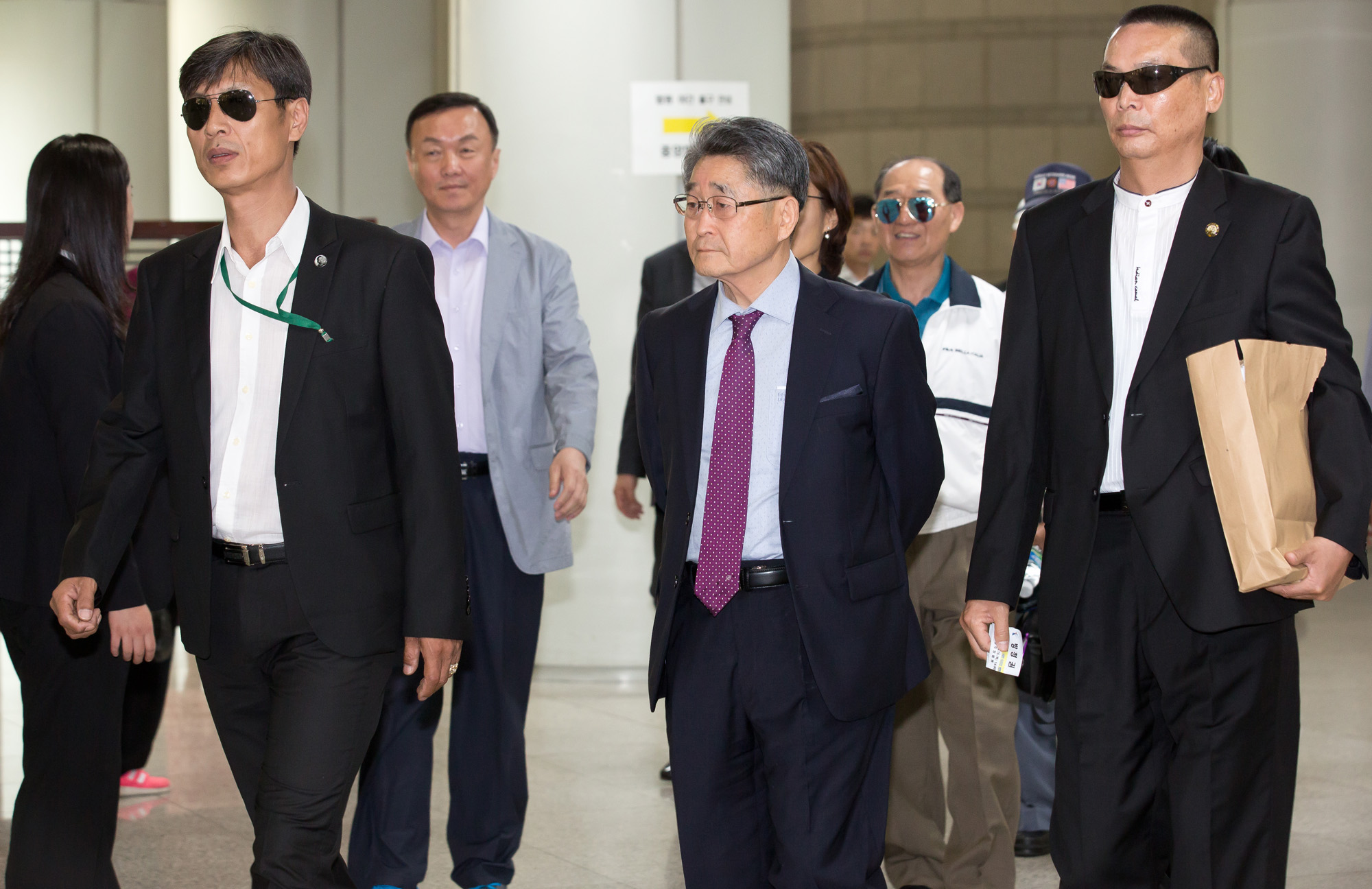 [서울=Eoimage] 임준선 기자 = 5.18민주화운동 북한군 개입설을 주장하는 지만원씨가 16일 오전후 서울 서초구 서울중앙지방법원에서 11차 공판에 출석하고 있다. 2019.5.16