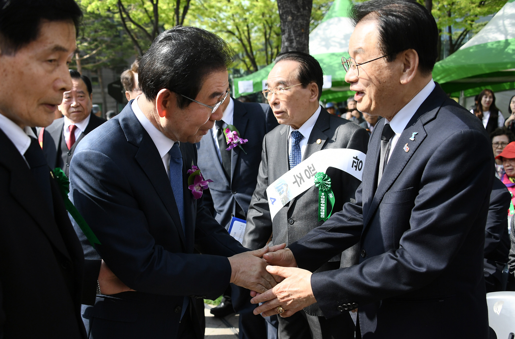 박원순 서울시장이 19일 오후 서울 중구 서울광장에서 열린 4·19 민주혁명 대행진에 앞서 인사말을 하고 있다. 서울시 제공