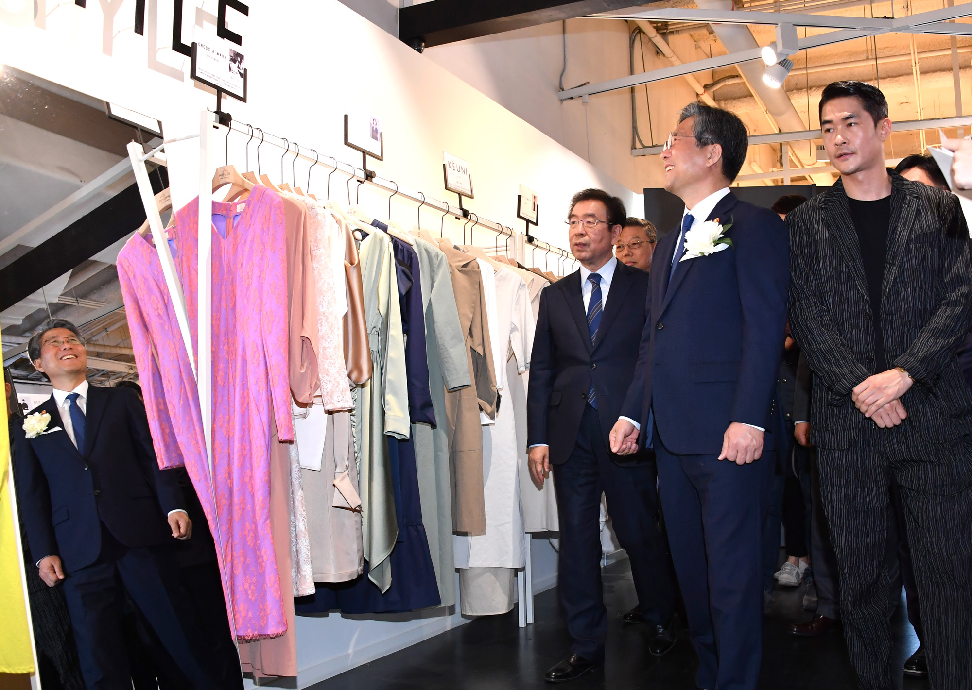 | 사진설명 | 25일 롯데 피트인 동대문점 2층에서 열린 개인맞춤의류 시범매장 개소식에서 이동면 KT 사장(왼쪽부터), 한준석 한국패션협회 회장, 성윤모 산업통상자원부 장관,박원순 서울시장,이광영 롯데자산개발 대표, 최병오 패션그룹형지 회장이 동대문 생태계와 4차산업혁명 기술(5G,빅데이터 등)이 융합된 사업화 모델 창출과 기술개발 및 정보교류 등에 대한 MOU(양해각서)를 교환한 후 기념촬영을 하고 있다. 서울시 제공 |