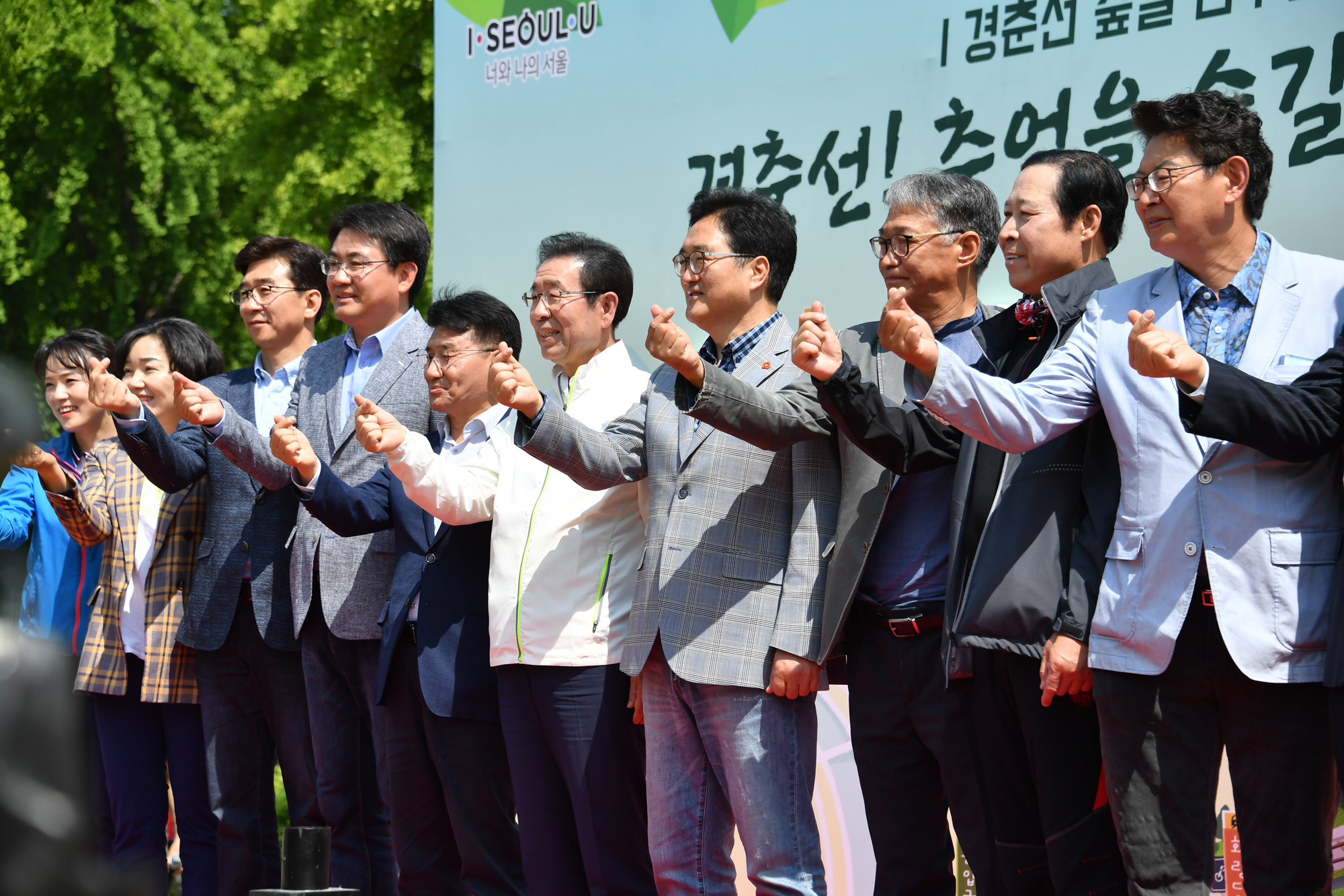 박원순 서울시장이 11일 서울 노원구 경춘선 숲길에서 열린 '경춘선! 숲길로 다시 만나다' 행사에서 숲길을 걷고 있다. 서울시 제공